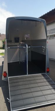 Mit Sattelkammer und Polyhaube Black Metallic!!! Gewicht887 kgGesamtgewicht2.400 kgNutzlast1.513 kgInnenlänge3.157 mmGesamtlänge4.604 mmInnenbreite1.654 mmGesamtbreite2.175 mmInnenhöhe2.300 mmGesamthöhe2.780 mmLadehöhe415 mmBereifung13 Zoll Serienausstattung EquiDrive® Fahrwerk inkl. Radstoßdämpfer Bereifung für 100 km/h geeignet (nur in Deutschland) 13-poliger Stecker mit Rückfahr- und Nebelscheinwerfer Alu-BiComp-Boden 21 mm Gummiboden 8 mm stark eingeklebt und versiegelt inkl. Seitentrittschutz Aufbau aus doppelwandigen, eloxierten Aluminiumprofilen abschließbare Sattelkammer mit Sattelhalter, Trensenhalter, Spiegel, Netz Massives, umlaufendes und verzinktes Rahmenprofil Elegante, verzinkte hintere Heckabstützung mit integrierter Beleuchtung Große Einstiegstüre mit 3-Punkt-Verriegelung Auflaufklappe mit Trittleistengummi Geteilte und höhenverstellbaren Brust- und Heckstangen mit Panikentriegelung EquiLock - verriegelbare Trennwand Getönte Ausstellfenster in Polyhaube Innenbeleuchtung und Heunetzring Exklusives Windschott für zugfreie Innenraumbelüftung Automatikstützrad mittig montiert mit Rangiergriff Polyhaube in Zeltgrau Exklusives Windschott für zugfreie Innenraumbelüftung Abbildungen können mit und ohne Sonderausstattung dargestellt sein.Die technischen Daten beziehen sich auf das Serienfahrzeug. Für Irrtümer und Schreibfehler wird keine Haftung übernommen. Wir verkaufen auch noch: PKW-Transporter,Kipper, Hochlader, Tieflader, Kofferanhänger,Motorradtransporter, Einachsanhänger und Tandemanhänger,Baggeranhänger, Pferdeanhänger, Kühlanhänger, für Preisauskünfte stehe ich gerne zu verfügung.Zul. Gesamtgewicht (t): 2