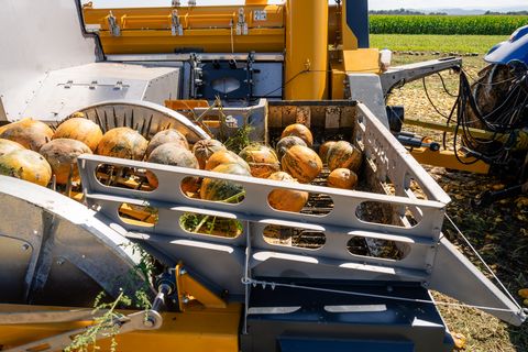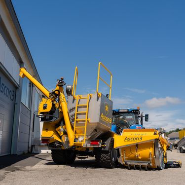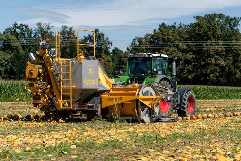 Vertrauen auch Sie dem Marktführer und Platzhirsch! Ascon3 PHÖNIX - DER Allrounder in der Kürbisernte! Als Premium-Hersteller in der Kürbistechnik setzen wir weiter auf höchste Qualität und Verarbeitung. Ernteleistungen von 1800 kg trockenen Kernen pro Stunde beeindrucken – vor allem bei der kompakten Bauweise. Auch das Reinigungsergebnis überzeugt bei allen Ernteverhältnissen und Kürbissorten. Langlebigkeit und Verschleißfestigkeit werden durch Bauteile bester Hersteller und den Einsatz optimierter Materialien garantiert. Alle Verschleißteile sind geschraubt und einfach zu tauschen. Technische Daten: - Leistungsbedarf ab 120 PS (150 PS empfohlen) - Gewicht ca. 6.950kg - Maße ca. 6,2 x 2,55 x 3,4m - Arbeitsbreite 4,95m - Leistung bis 1800 kg trockene Kerne pro Stunde - Hydraulikversorgung vom Traktor aus mit Load-Sensing oder Konstantpumpe umschaltbar - nötige Steuergeräte: 1x doppelwirkend und 1x einfachwirkend mit drucklosem Rücklauf - Edelstahl-Korntank mit 2,6m³ Inhalt - Abtankdauer nur 01:45 min - 24-Stunden Service - 100% made in AustriaKontaktdaten: