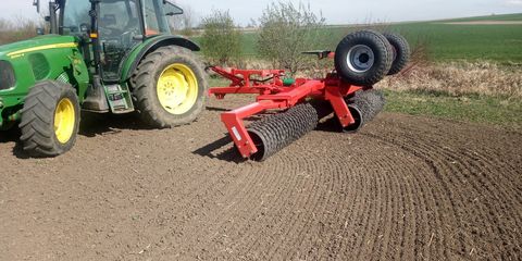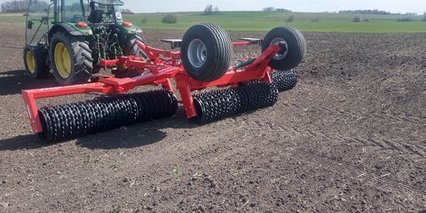 Agro Masz Cambridgewalze Hestile 630 6,3 m Arbeitsbreite Zugtraverse Kat II/III Durchmesser 500/ 530 mm Gewicht 3800 kg Hydr. Klappbar mit 3 Zylinder System Bereifung 400/60-15.3 Optional: Ringe 590/600 mm + EUR 2400 Netto Crossboard + EUR 2800 Netto Steinsammelbehälter Mietpreis EUR 30 netto pro Betriebsstunde oder EUR 15 netto / haHektar (ha): 0