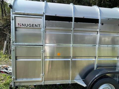 NUGENT Viehanhänger LC3618H - lagernd Knott Fahrwerk und Auflaufbremse Parabelblattfedern ***Spezial-Federung PARABOLIC EQUALIZER*** Rückfahrautomatik Abschließbare Anhängekupplung massives Stützrad 30 mm speziell bearbeiteter Holzboden mit 3 mm Aluminium-Riffelblech mehrere Anbindemöglichkeiten Trennwände mit Alu-Profilen Robuste Heckklappe mit Gasdruckdämpfern Seitliche Tür für Laderaumkontrolle Optimale Belüftung Bereifung 195/75R16C inkl. Reserverad und Halterung LED-Beleuchtung Inkludiertes Zubehör: Tür/Rampen Kombination (Modell 520) 1 Querabtrennung getrennt aufklappbare Front-Lüftungsklappen seitliche Lüftungsklappen, einzeln zu öffnen bzw. verschließen Innenbeleuchtung durchgehende Inspektionstür Beleuchtung nach STVO mit einem 13-poligen Stecker EC Certificate of Conformity (COC) Maße und Gewichte: Innenlänge:3,71 m Innenbreite:1,80 m Innenhöhe:1,93 m HzGG:3.500 kg Eigengewicht:1.210 kg Inklusive folgender Leistungen: persönliche Beratung faire Geschäfte beste Qualität Spitzenservice auch Jahre nach dem KaufKontaktdaten:
