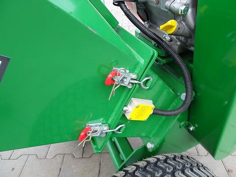 Besuchen Sie auch unseren Online-Shop www.traktorshop24. com Preis inklusive 19% MwSt. Holzhäcksler Agrifarm WOD7 Neugerät 15PS Benzin Motor mit bis zu 12cm Holzeinzug mit Sicherheitsklappe inklusive Not-Aus-Schalter Ein Häcksler der Oberklasse! Der Holzhäcksler WOD7 ist ein einfach aufgebauter Häcksler zum Häckseln von Ästen, Stämmen, Büschen, Sträuchern und deren Blättern. Ideal für den Einsatz Ihrer Garten-, Hof- und Forstarbeiten. Mit diesem Holzhäcksler können Sie Äste bis zu 12cm zerkleinern. Aufgrund der massiven und stabilen Bauweise ist dieser Holzhäcksler natürlich auch für den gewerblichen Einsatz einsetzbar. Der Antrieb erfolgt über einen 15PS starken Motor. Das gehäckselte Holz wird durch einen Auswurfkanal befördert. Dieser hat eine Höhe von ca. 150cm. Somit können Sie das Häckselgut auch direkt auf einen Anhänger befördern. Auf der Trommel befinden sich 2 rotierende Messer, welche gegen eine Gegenschneide laufen. Somit zieht sich der Häcksler das Schreddergut selbst ein. Der Einfülltrichter hat eine Öffnung von 55 x 55 cm und unten hin zu den Messern eine Öffnung von 28 x 20cm. Somit lassen sich Hölzer bis zu 12cm häckseln. Mit der Zugstange/Anhängerkupplung kann der Häcksler leicht an jeden Ort gezogen werden. Der Auswurfkanal lässt sich um 360° drehen. Zudem lässt sich die Auswurfweite regulieren. Der Schredder ist zudem sehr wartungsfreundlich. Wichtige Baugruppen wie Messer, Gegenschneide usw. sind sehr einfach zu erreichen. Die Messer sind beidseitig geschliffen. Somit lassen sich diese beidseitig nutzen, falls die eine Seite verschlissen ist. Die Lager sind zusätzlich mit Schmiernippeln versehen. Auslieferung erfolgt im fertig montierten Zustand. Technische Daten: - 4 Takt-Motor OHV, 420 ccm, 15 PS - Start: Seilzug - Drehzahl: 3600 U/Min. - max. Hackdurchmesser: 12cm (je nach Holzbeschaffenheit und Holzart) - Größe Hackschnitzel: ca. 2-3cm - Hackleistung: ca. 4-6m³/h - Länge Einwurftrichter: 120cm - Durchmesser Hacktrommel: 25cm - Gesamtgewicht: 220 kg - Kraftstoff: Normalbenzin - Keilriemen: 2 - Tankinhalt: 6,5 Liter - Auswurfhöhe: 150cm - Einwurfhöhe: 95cm - Anzahl Messer: 2 Stück + 1 Gegenschneide - Einzugsmaß Trichter: 55cm x 55cm - Abmessungen Öffnung zur Hacktrommel: 28cm x 20cm - Abmessungen: 280cm x 80cm x 150cm (inklusive Zugstange) - Farbe: grün - Bereifung: 16x5.00-8 Die Lieferung des Häckslers erfolgt fertig montiert mit allen Ölen und abgeschmiert. Transportkosten innerhalb Deutschland: 99,00 Euro inkl. 19% MwSt. Gerate sind ständig auf Lager. Verkauf erfolgt an Privatkunden und Gewerbekunden. Ersatzteile sind ständig auf Lager. Weitere Informationen auf www. traktorshop24. com Wir haben auch Mulcher, Mähwerke, Kreiselmähwerke, Bodenumkehrfräsen, Frontlader, Heckbagger, Pflüge, Transportboxen, Palettengabeln, Anhänger... VEMAC GmbH Lange Göhren 7b 39171 Osterweddingen / Magdeburg Tel. 039205 - 43 46 10 Fax: 039205 - 43 46 11 www. traktorshop24. com- PDF Datenblatt
