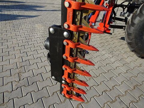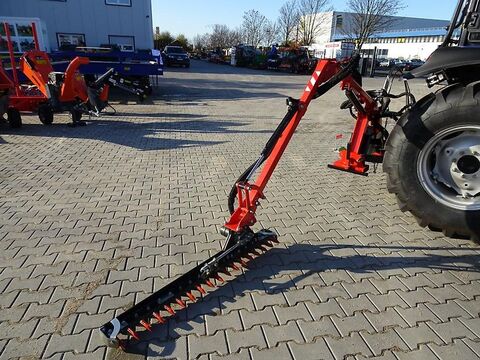 Besuchen Sie auch unseren Online-Shop www.traktorshop24. com Heckenschere - Boxer HSC130 130cm Arbeitsbreite (optional auch mit Heckenschere 160cm erhältlich) Neugerät inklusive eigener Ölversorgung durch Öltank Die ideale Heckenschere für Kleintraktoren, besonders geeignet zum Schneiden von Sträuchern, Bäumen, Hecken, Böschungen oder Gräben, Waldrändern. Die Heckenschere verfügt über einen eigenen Hydrauliköltank, worüber der Antrieb erfolgt. Neigungswinkel und seitlicher Versatz sind jeweils separat hydraulisch verstellbar. Die Bedienung der Heckenschere erfolgt über ein Steuerventil mit mehreren Hebeln, welches Sie an einer geeigneten Stelle im oder am Traktor befestigen können. Der Anbau erfolgt an den Heck-Drei-Punkt Kat.1 des Traktors. Die Montage kann am Heck oder an der Front des Traktors oder Hofladers erfolgen. Ausgestattet mit einer 130cm langen Heckenscherenkopf (optional auch mit 160). Auch alle Schwenkarme und Schwenkbolzen sind mit Schmiernippeln versehen, so dass sich diese sehr leicht Abschmieren lassen. Aufgrund des geringen Gewichtes ist diese Heckenschere speziell für Klein- und Kompakttraktoren ab 20PS geeignet. Technische Daten: - Arbeitsbreite Heckenscherenkopf: 130cm (optional mit 160cm) - Unterkante Heckenschere+Arbeitsbreite (max. Arbeitshöhe): 470cm - Neigungswinkel: 30° - Gewicht: 290kg - Leistungsbedarf: ab 20PS - Montage an Front oder Heck - Durchmesser der Äste 2-3cm - eigener Öltank mit 20 Liter Volumen Die Lieferung der Heckenschere erfolgt fertig montiert mit allen Ölen und abgeschmiert. Transportkosten innerhalb Deutschland: 150,00 Euro inkl. 19% MwSt. Transportkosten innerhalb Europa: auf Anfrage Wir haben auch andere Anbaugeräte wie Volumenschaufel, Hochkippschaufel, 4-in-1 Klappschaufel, Palettengabel, Mistgabel, Ballenspieß, Krokodilgebiss, Silageschaufel, Holzgreifer, Ballenzange, Gummischiebeschild, Betonmischer, Schneeschilder lieferbar! Viele Anbaugeräte wie Bodenfräsen, Mulcher, Mähwerke, Anhänger, Holzhäcksler usw. lieferbar. VEMAC GmbH Lange Göhren 7b 39171 Osterweddingen / Magdeburg Tel. 039205 - 43 46 10 Fax: 039205 - 43 46 11 www.traktorshop24. com- PDF Datenblatt