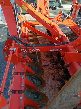 Kubota CU1300 Kurzscheibenegge mit Actiflexwalze - Arbeitsbreite und Transportbreite 3,0m - 2 Reihen, starre Ausführung - 24 konische Scheiben - Scheibenabstand 245mm - Abstand Scheibenreihen 900mm - Scheibendurchmesser 520mm x 5mm (215kg/mm²) - Strichabstand 12,5cm - Hydraulische Tiefeneinstellung - Parallelogrammgeführte Seitenbleche - 5-fach abgedichtete, wartungsfreie Axialschrägkugellager - Actiflexwalze d=580mm, 160kg/m, für intensive Durchmischung, auch bei steinigen Bedingungen - Warntafeln und Beleuchtung - Eigengewicht 1.646 kg - Dreipunktanbau Kat. 2/3 - Leistungsbedarf min. 70PS bis max. 150PS Lagernd in unserer Filiale in Wien - sofort verfügbar!Scheibendurchmesser (mm): 520