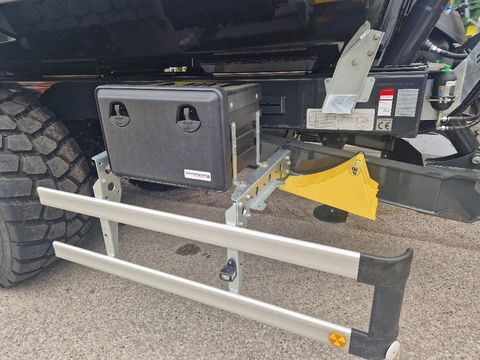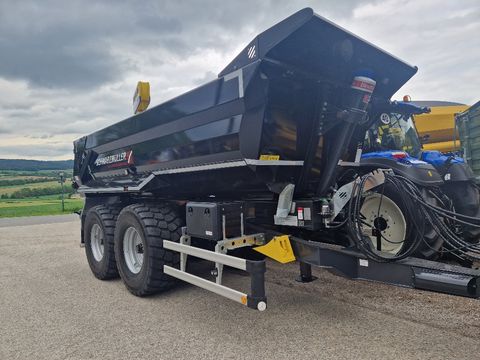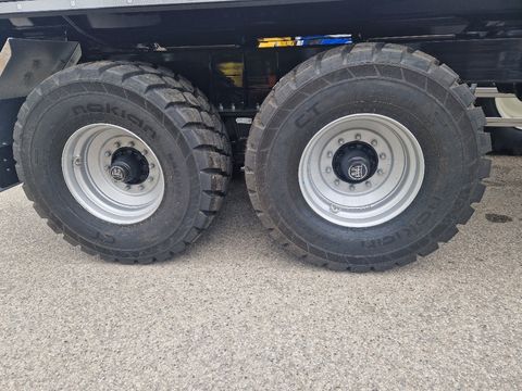 Zugkraftbedarf mind. 125KW/170 PS, Eigengewicht mind. 6.5t Stützlast mind. 4 t, Anhängekupplung K80 Kugeleinsatz, Lagerbock mit Untenanhängung Lagerbock-Weite mm Hydraulikversorgung für 2-Rohr-Kipphydraulik und Hydraulikversorgung mit mindestens 3 doppelwirkende Steuergeräte für Zugdeichsel, Stützfuß, Rückwand, etc. (Ölvolumen ca. 40l erforderlich) Gewichte Gesamtgewicht (zulässig) 22 t Gesamtgewicht (technisch) 28 t im Offroad-Einsatz bei Stützlast 4 t Maße Innenlänge ca. 5.300 mm Innenbreite ca. 2.330 mm Laderauminnenhöhe ca. 1.200 mm Ladevolumen ca. 13,5 m³ Gesamtbreite max. 2.550 mm Ladehöhe unbeladen ca. 1.500 mm Rahmen Zentralachs-Stahlrahmenschweißkonstruktion in gewichtsoptimierter Bauweise Leichtbau-Rahmen aus hochfesten Feinkornstahl, für Einsatz mit Breitreifen bei Gesamtbreite max. 2.550 mm Zugeinrichtung Schwerlast-V-Zugdeichsel in geschweißter Fachwerkskonstruktion, hydraulisch höhenverstellbar ca. 500 mm und gedämpft, mit Schwerlast-Kugelkopfkupplung K80, samt Reifenanfahrschutz Stützeinrichtung Vorne 1 hydraulischer Stützfuß, Stützlast 8 t, beladen abkuppelbar, Betätigung über Zugfahrzeug Stützfüsse einfärbig lackiert, in Fahrgestellfarbe Achsen BPW-Pendelaggregat mit Trommelbremsen, S-Nockenbremse 410/180 mm, Tragfähigkeit 24 t (statisch 30 t), Offroad-Ausführung 2 Achsen Achsabstand 1.550 mm 1. und 2. Achse starr Räder 4 Stück Reifen 650/55 R 26,5, 177D, Fabrikat Nokian CT (Baustellenprofil), Tragfähigkeit 15,8 t / Achse bei zulässiger Höchstgeschwindigkeit von 40 km/h 4 Stück Stahl-Felgen 20,00 x 26,5, Einpresstiefe 30 mm, silber Bremsanlage/Federung Zweileitungs-Druckluftbremsanlage Bremsanlage Fabrikat Wabco Hydraulischer ALB-Regler Ohne ABS - für Traktorbetrieb bis 40 km/h Federspeicher-Feststellbremse auf 2. Achse Stahl-Luftbehälter 80 l Brems-/Luftverbindungsleitungen mit 2 Einzel-Kupplungsköpfen gelb/rot Schlauchleitungen über Schlauchturm verlegt Kippmulde Stahlmulde mit verstärktem Bodenblech aus Spezialstahl HB450 (Hardox oder vergleichbares Material) sowie verstärkten Obergurt Bodenstärke 6 mm = durchgehendes Bodenblech, Wandstärke 6 mm Vorderwand und Rückwand schräg, beidseitig im Räderbereich außen durchgehendes Stahl-Schutzblech (Schürze) Erhöhter Baggerschutz Stahl-Sonder-Rückwand außenliegend, für extrahohe Öffnung mit versenkter Lagerung, doppelwirkender Hydraulikzylinder mit Lasthalteventil für Hydraulikbetätigung über Zugfahrzeug, ohne Schüttgosse, nicht zum gewaltsamen Materialverdichten geeignet, mit zusätzlichem Gelenk, seitlich fixe Verriegelungshaken Hydraulik 1-Rohr-Anlage mit Hydraulik-Verbindungsschlauch samt Steckkupplung SVK DN13 1 Stück Front-Kipperpresse für Rückwärtskippung, Kippwinkel ca. 55 ° Plane Ohne Rollplane und auch nicht dafür vorbereitet Beleuchtung/Elektrik 12/24-Volt-Beleuchtungseinrichtung 2 Stück VollLED-Fünfkammer-Schlussleuchten "EcoLED II" mit Vorschaltgerät auf separatem Leuchtenträger 2 Stück LED-Positionsleuchten vorne 2 Stück LED-Umrissleuchten hinten LED-Seitenmarkierungsleuchten 2 Stück LED-Kennzeichenleuchten Fixes Verbindungskabel mit 1 x 13-poligem Stecker mit Adapter auf 7-polig 4 Stück zusätzliche LED-Arbeitsscheinwerfer Anbau je 1x links und 1x rechts seitlich und 2x hinten, separate Stromversorgung über 3-pol. Stecker (nach DIN 9680) Lackierung Stahlgranulatreinigung, mehrschichtige Epoxidzinkphosphatgrundierung und Spritzlackierung mit 2-Komponenten Polyurethan Decklack Fahrgestell = RAL 7021 Schwarzgrau Mulde und Rückwand lackiert = RAL 9005 Tiefschwarz Radnaben schwarz = pulverbeschichtet Stützfüsse einfärbig lackiert, in Fahrgestellfarbe = RAL 7021 Schwarzgrau Unterfahrschutz = feuerverzinkt, unlackiert Seitlicher Anfahrschutz = Werkswahl Ohne Haftungs-/Lackiergarantie bei überlackierten beschichteten Anbauteilen Kunststoffteile schwarz, unlackiert Pulverbeschichtete An-/Einbauteile schwarz Feuerverzinkte An-/Einbauteile unlackiert Beschriftung Schwarzmüller-Beschriftung seitlich Schwarzmüller-Beschriftung hinten Seitlich reflektierende Konturmarkierungsstreifen in weiss/silber über ganze Länge und auf Brücke oben 2 Ecken, nach ECE 48 Zusätzlich Konturmarkierungsstreifen vorne in weiss/silber, nach ECE 48 Hinten reflektierender Konturmarkierungsstreifen in rot, umlaufende Voll- Konturmarkierung, nach ECE 48 Zubehör/Allgemein Hinten Schmutzbleche aus glattem Stahlblech, verzinkt, mit Spritzschutz Stahl-Formrohr-Unterfahrschutz, feuerverzinkt, hochklappbar 2 Unterlegkeile, gemäß Vorschrift, mit Halterung 2 Stück Abschleppösen, am Fahrgestell hinten, für Zugbeanspruchung max. 16 t Zentrale Schmierleisten nach außen gezogen Halterung für Schaufel, Besen und Schaber Lärmdämpfer = Gummiauflagen Zubehör/Anbauteile INFO Ohne Reserveradhalter 1 Stück Kunststoff-Werkzeugkasten 600x415x460 mm (BxHxT außen), mit 2 Verschlüssen, absperrbar, unlackiert Seitlicher Anfahrschutz aus Aluminium-Profilen laut Vorschrift Zubehör/Beschilderung Aufkleber, Bedienungs- und Sicherheitshinweise, in Deutsch Kennzeichenhalterung CE-Kennzeichnung Abnahme und Dokumente "EG-Einzelabnahme" für Traktorbetrieb Änderungen und Irrtümer vorbehalten.Zul. Gesamtgewicht (t): 22