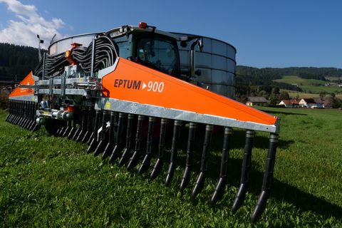Schleppschuhverteiler Eptum (Vorführmaschine) - 9 m Arbeitsbreite - Transportbreite 3 m - original Harsö Schneidverteiler mit 40 Abgängen - 22 cm Strichabstand - elektrohydraulische Steuerung - induktive Durchflußmengenmessung - Touch-Display - Stützräder zur Tiefenführung - spezial Schleppschuhe für eine sehr schmale Ablage der Gülle - Zugrohr 4" inkl. Schiebereinheit zum absperren und zum Auswurf des ersten Pfropfens.Kontaktdaten: