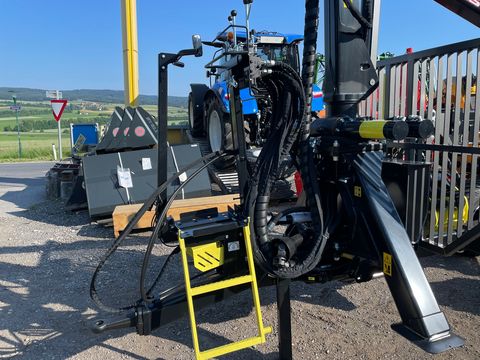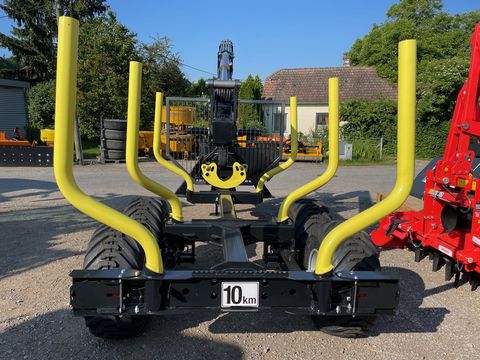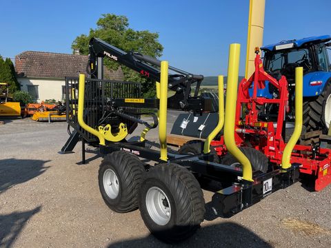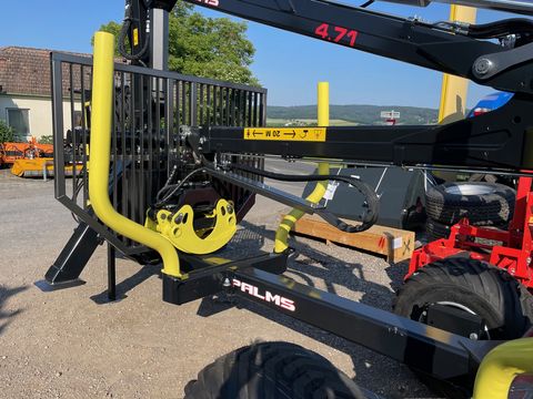 Palms Forstanhänger H8SX, Eigenölversurgung, Palms EV Steuerung, Drosselventil für hydr. Bremse, Dehhebelsteuerung, Pendelbremse - doppelt gebremst, 3 Rungenpaare, Zentralrahmen, Stehpodest, Forstkran K4.71, Greifer Änderungen und Irrtümer vorbehalten.Öffnungsweite (cm): 140