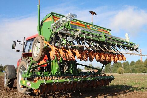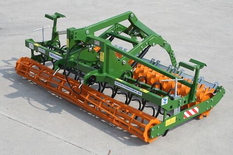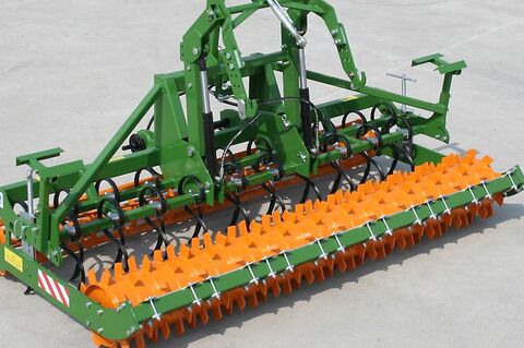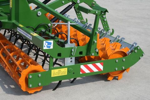 Rolmako Saatbettkombination kommt auf dem leichten und mitteldichten Boden zum Einsatz. Das Gerät kann mit einer Drillmaschine mitarbeiten. Diese Kombination macht Saatbettvorbereitung und Drillen in einem Arbeitsgang möglich. Das Gerät hat eine universale Unterlenkerwelle, welche die Anhängung am unterem Zugband eines Schleppers leichter macht. Saatbettkombination ist in drei Arbeitsbreiten von 2,5 m, 2,7 m, 3,0 m erhältlich. Standardausstattung Unterlenkerbolzen, vordere Krümlerwalze, schräg Ø 325 mm, zwei Zinkenreihen mit gekrümmten Zinken, Aushebung für Drillmaschine über Doppelzylinder, Radstützen, hintere Rohrstabwalze Ø 450 mm. Maschinenpreis mit Standardausstattung ARBEITSBREITE\ 2,50 m 2,70 m 3,00 m 4,00 m Optionale Ausstattung (gegen Aufpreis zur Maschine mit Standardausstattung) Gerader Zinken SU 32x12 mm Drei Zinkenreihen* Wartungsfreie Lagersätze der Walze (St.)** JEDE FARBE MÖGLCH (nach Verfügbarkeit) *) Option nur für Zinken SU gerade. **) Rahmen aus Gusseisen GGG50 mit Stahlgehäuse Optionale Heckwalzen (Preise auf Anfrage) - Krümlerwalze mit Einfachleisten Ø 460 mm - Krümlerwalze mit Zahnleisten Ø 460 mm - Zahnpackerwalze Ø 460 mm - Rohr- und Ringwalze Ø 450 mm - Crosskill Walze Ø 400 mm - Federwalze Ø 470 mm Technische Daten ARBEITSBREITE SCHEIBENANZAHL KRAFTBEDARF GEWICHT 2,50 m 17 Stück 70 PS* 730kg** 2,70 m 19 Stück 75 PS* 790kg** 3,00 m 21 Stück 80 PS* 870kg** 4,00 m 26 Stück 115 PS* 1080kg** *) Minimaler Kraftbedarf kann unterschiedlich sein je nach der Maschinenausstattung und Bodenverhältnissen. **) Maschinengewicht mit Standardausstattung.