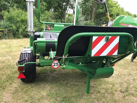 Wolf-Landtechnik bietet einen Rundballenwickelgerät SIPMA OS 7650 GAJA an.Das Rundballenwickelgerät mit dem Ballenleger SIPMA OS 7650 GAJA ist eine voll automatisierte Selbstlademaschine, die an einen Schlepper angehängt wird. Zusätzlich zu den Vorteilen der Rundballenwickelgerät MAJA Serie, das Rundballenwickelgerät GAJA Serie haben eine verstärkte Konstruktion, die es erlaubt, mit Ballen mit einem Gewicht von bis zu 1200 kg zu arbeiten, und eine elektronische Steuerung, die eine Simulation der Arbeit auf dem Display ermöglicht. Der hochentwickelte Hydraulikblock lässt die Widerstände auf das Hydrauliksystem reduzieren und gibt bessere Steuerungsmöglichkeiten durch die Geschwindigkeitseinstellung aller Funktionen des Treibers. Das Hydrauliksystem mit Load-Sensing-Funktion (zusätzliches Zubehör) reduziert den Kraftstoffverbrauch und verlängert die Lebensdauer der Hydraulikpumpe des Schleppers. Die Verbesserung der Arbeitskultur des Hydrauliksystems durch zweifache Reduzierung des durchschnittlichen Betriebsdrucks und zweifache Senkung des Energieverbrauchs. Die Kontrolle des Verunreinigungsgrads des Ölfilters signalisiert die Notwendigkeit seines Austausches, wenn der zulässige Verunreinigungsgrad übersteigt wird. Die hydraulisch verstellbare Deichsel ermöglicht in der Arbeits- und Transportlage eine effektive Sammlung der Ballen und den Transport der Maschine auf Zufahrtsstraßen (auch öffentlichen) aufs Feld. Dank dieser Deichsel ist es einfacher, die Maschine umzustellen und sie auf den Zufahrtsstraßen aufs Feld zu transportieren. Der Sensor auf dem Ladearm ermöglicht eine automatische und selbsttätige Initiierung des Wickelvorgangs. Stufenlose Regelung der Hebe - und Senkgeschwindigkeit des Ladearmes, sowie des schwenkbaren Tisches. Stufenlose Drehzahlregelung des Tisches des Wickelgeräts ermöglicht die Anpassung der Geschwindigkeit an das Ballengewicht, auch während des laufenden Wickelvorgang Ein zusätzlicher Foliensensor stellt den Ballenwickelvorgang im Falle von Folienriss oder -ende ein. Ein großes grafisches LCD-Display ermöglicht eine einfache und intuitive Eingabe der Arbeitsparameter und gibt ein klares Bild über den Sensorenzustand des Wickelgeräts. Die elektronische Steuerung gewährleistet den vollautomatischen Betrieb der Maschine und überwacht alle ihre Arbeitsparameter. Elektronische Steuerfunktionen: .manuelle oder vollautomatische Bedienung des Wickelgeräts .kontinuierliche, grafische Beobachtung des Wickelvorgangs, .Messung der Anzahl der umgewickelten Ballen, .Programmierung der Umwicklungsanzahl (abhängig von der Folienbreite), danach erfolgt ein automatischer Übergang zur nächsten Arbeitsphase, .Statusanzeige der Reed-Sensoren (Bewertung des Wirkungsgrads oder der .Betriebsstörung der Sensoren) – lässt die Mängel durch den Austausch des .defekten Sensors selbst beseitigen, ohne dass der Service einbestellt .werden muss, .Anzeige der Gesamtzahl der umgewickelten Ballen nach der Installation .der elektronischen Steuerung auf dem Wickelgerät, .Automatische Einstellung der Maschine in die Transport- und Arbeitsposition, .Ein großes grafisches LCD-Display mit Parametervisualisierung, .Stufenlose Regelung der Hebe - und Senkgeschwindigkeit des schwenkbaren Tisches .Stufenlose Regelung der Hebe - und Senkgeschwindigkeit des Ladearms, .die Möglichkeit, den Umfang der Tischdrehung anzupassen, ohne den Wickelvorgang zu unterbrechen .die Möglichkeit, einen automatischen Verpackungsmodus anzuhalten und Wiederaufnahme der Arbeit an der Ballenlagerstätte, .Folienzubringerkontrolle – ein zusätzlicher Foliensensor stellt den Ballenwickelvorgang im Falle von Folienriss oder -ende ein, .Kontrolle des Verunreinigungsgrads des Ölfilters, .die Möglichkeit, alle Parameter des Automatikmodus zu bearbeiten. Tech.Daten : .Durchmesser umgewickelterBallen: 1200 - 1500 mm .Breite umgewickelter Ballen: 1250 mm .maximales Ballengewicht: 1200 kg .Folienbreite:500 / 750 .Antrieb des Wickelgeräts: hydraulisch .Wickelzeit eines Ballens:˜ 60 sek .Ölbedarf: 20 - 90 l/min. .Leistungsbedarf: 35 (48) KW(PS) Zubehör: .Ballenleger .universelle Folienzubringervorrichtung (500 / 750) .Behälter für Folienrollen .Die elektronische Steuerung .elektrische Installation, die die Fahrt auf öffentlichen Straßen zulässt .hydraulische Halte - und Schneidevorrichtung für Folie .breite Bereifung - 400 x 60 - 15,5 zusätzliches Zubehör: .Das Hydrauliksystem mit Load-Sensing-Funktion Dimensionen in Arbeitlage .Länge:5760 mm .Breite:3160 mm .Höhe:2210 mm Dimensionen in Transportlage .Länge:5820 mm .Breite:2350 mm .Höhe:2430 mm .Gewicht:1360 mm Firma Wolf-Landtechnik ist ein autorisierter Händler und Generalimporteur der Firma Sipma S.A. Gern stellen wir Ihnen individuelle Angebote zusammen, sprechen Sie uns an und wir helfen schnellstmöglich weiter. Wolf-Landtechnik GmbH 02827 Görlitz Nickrischer Str. 15 Mobil 1: 01711001320 Wir sprechen deutsch, englisch und polnisch. Alle weiteren Sprachen können wir nur per mail beantworten! Gern probieren wir es dann zu übersetzen und helfen Ihnen weiter. Wir freuen uns auf Ihre Kontaktaufnahme! Mo.-Fr. 8.00-16.00 Uhr Samstags nach Terminvereinbarung