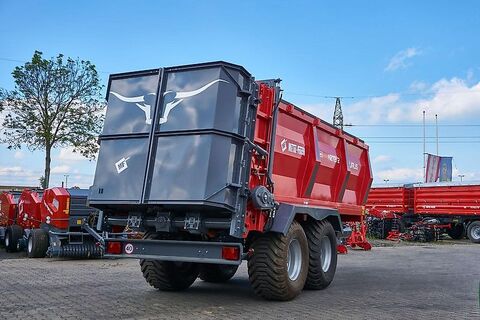Wolf-Landtechnik verkauft Metal-Fach N272 /2 VERTI TAURUS 14 Tonen Miststreuer mit mit zwei stehenden Walzen Nur 1 Stück zu dem Preis verfügbar! LAGERVERKAUF!!! Miststreuer Tandem N272/2 TAURUS 14t inkl.: Schieber des Ladekastens Hydraulische Ausstellfenster Leiter Starre Zugöse ø50 mm Weitwinkel-Zapfwelle pneumatische Zweileiter-Bremsen mit ALB Räder 550/60-22,5 4-Wege-Hydraulik Hydraulischer Stützfuß Oberkante der Bordwände – Gummilippe Unterlegkeile Elektronische Bodensteuerung (kabelgebundene Fernsteuerung +/-) Hinterer Unterfahrschutz Standardausstattung: Verriegelung der Ladebox Vertikaler Adapter mit 2 Rotoren Hydraulische Deflektoren Leiter Feste Zugöse Ø50mm Weitwinkelgelenkwelle Zweikreisige pneumatische Bremsen Räder 550/60-22,5 4-teilige Hydraulik Hydraulischer Fuß Seitenenden - Gummistreifen Stützkeile Elektronisch Bodensteuerung (Kabelfernbedienung +/-))), hinterer Unterfahrschutz zusätzliche Ausstattung (gegen Aufpreis): Vollaufsätze 0,5 m Gitteraufsätze 0,5 m Gitteraufsätze 0,8 m Hydraulische Bremsen Duomaticbremsen Räder 600/55-22,5″ Räder 650/55-26,5 Räder 710/45-22,5” Automatischer Bremskraftregler – ALB-Ventil Zugöse Ø 40 Drehbare Zugöse Ø 50 Kugelkopfkupplung K80 4-Wege-Verteiler mit adaptiver Hydraulikanlage Elektronische Präzisionsbodensteuerung (Drehknopf für stufenlose Geschwindigkeitsregelung) EU-Zulassung Lackieren des Kastens in einer anderen Farbe als Standardfarbe (Standard: Rot) Gesamte L/B/H - 8250/ 2545 / 3450 [mm] Innenmasse L/B/H - 5000 / 2000 / 1400 [mm] Eigengewicht - 6160 [kg] Ladehöhe: -2,91 m Eigengewicht: 6160 kg Leistungsbedarf: -min 120 ps