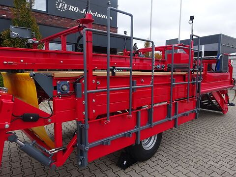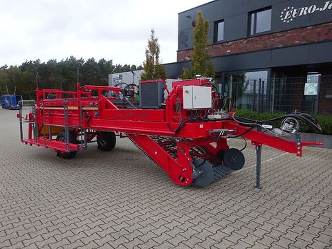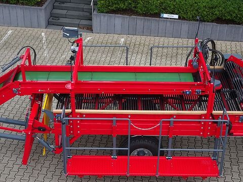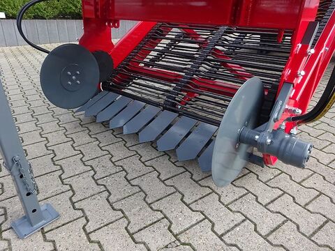 Süßkartoffelroder Ceres SPH 1400, Vorführmaschine Baujahr 2023, Sondernettopreis 2-reihiger Süßkartoffelroder für Kistenbefüllung Eigene Bordhydraulik über Vorsatzgetriebe mit Schnellverschluß, eigenem Hydrauliktank mit 150 l Volumen und eigenem Ölkühler Stufenlose Geschwindigkeitsregulierung der Siebbänder hydraulische Deichselverstellung Hydraulische Lenkachse Höhenverstellbare Siebband mit Spatenschar und hydraulisch angetriebenen Sechscheiben Siebband ca. 1400 mm breit (gummiert) Verleseband ca. 1600 mm breit (gummiert), lichte Weite 24 mm hydraulisch angetriebene Verteilerwalzen auf dem Verleseband Austrageband aus PVC Gummigurt Breite ca. 600 mm hydraulisches Ausfahren des Austragebands in die Kiste hydraulisches Kippen und Absetzen für eine einzelne Kiste Erforderliche Schlepperleistung ca. 70 PS Gewicht ca. 3200 kg Eigene Entwicklung, eigene Herstellung. Finanzierung und Lieferung gegen Mehrpreis möglich.Kontaktdaten: