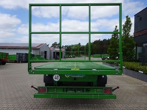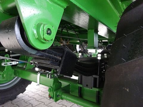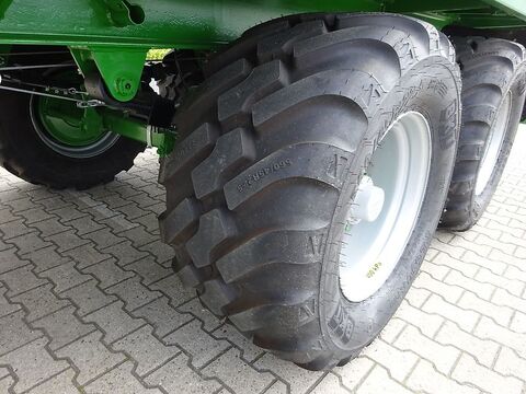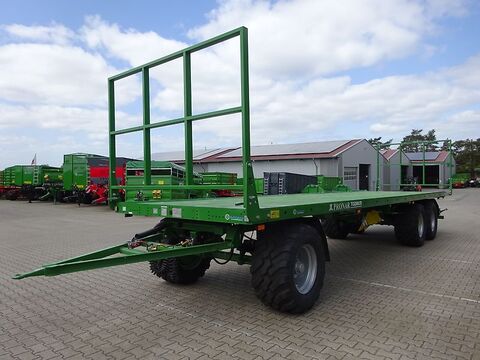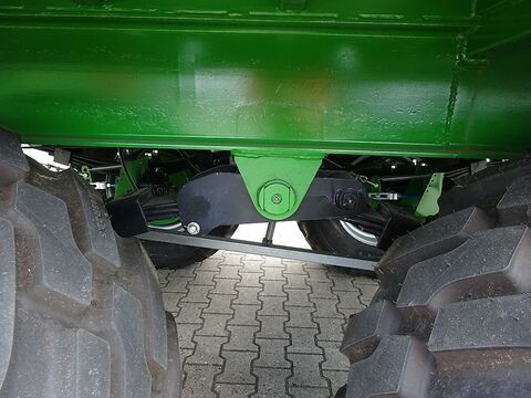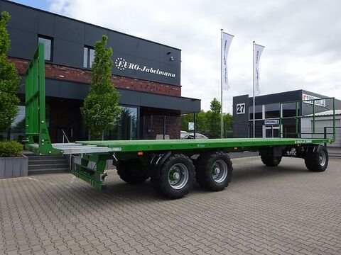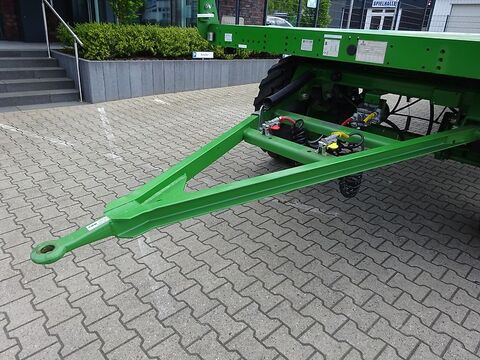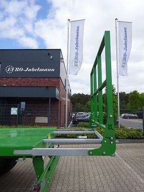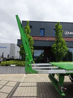 NEUFAHRZEUG, Ausstellungsfahrzeug: PRONAR Ballenwagen TO 28 KM Technische Daten: Gesamtgewicht 24000 kg Eigengewicht ca. 5500 kg Nutzlast ca. 18500 kg Länge Ladefläche ca. 9900 mm Länge Ladefläche ausgezogen ca. 11000 mm Breite Ladefläche ca. 2470 mm Gesamtlänge ca. 12000 mm Gesamtbreite ca. 2545 mm Stahlbodenstärke 3 mm Spurweite 2060 mm Achsdurchmesser 100 mm Bremstrommel 406 x120 Parabelfederung Geschwindigkeit 40 km/h Plattformhöhe ca. 1110 mm Bereifung 445/45 R - 19,5 Plattformhöhe ca. 1270 mm (+ 16 cm) bei 560/45R22,5 (Optional erhältlich) Plattformhöhe ca. 1380 mm (+ 27 cm) bei 500/60R22,5 (Optional erhältlich) Serienmäßige Ausstattung: Plattform für Rungen vorgesehen V-Deichsel mit starrer Zugöse Ø 40 mm 2-Kreis Druckluftanlage, Feststellbremse Plattformverlängerung möglich Seitliche Begrenzung durch Profilaufkantung Ladegitter vorne und hinten Unterfahrschutz hinten Beleuchtungsanlage mit seitl. Beleuchtung Unterlegkeile mit Halter Lackierung RAL 6010 Gegen Mehrpreis auf Anfrage: Staukasten für Spanngurte Kunststoffkotflügel vorne und hinten Seitlicher Anfahrschutz ALB-Regler Bereifung 560/45 R 22,5 Bereifung 500/60 R 22,5 TÜV-Gutachten und Betriebserlaubnis Hydraulische Ladungssicherung(keine Verlängerung mehr möglich, keine Rungen möglich). 2 x DW erforderlich. Gewicht: ca. 1,3 to. Für bis zu Ø1,8 m Ballen geeignet (Durchfahrtshöhe ca. 3400 mm) Nutzlast dann ca. 12250 kg. Hintere hydraulische Abstützung (aus eigener Herstellung) mit 2 Hydraulikzylinder, z. B. beim Befahren mit Minibagger, Radlader, Hoftrac usw., klappbare Stützen, 2 Bedienhebel, komplett montiert Finanzierung und Anlieferung gegen Mehrpreis möglich. Wir liefern folgende Pronar Ballenwagen: TO 22, 2-achs, 10 to GG, Plattformlänge max. 7270 mm TO 25, 2-achs, 12 to GG, Plattformlänge max. 7270 mm TO 27, 2-achs, 18 to GG, Plattformlänge max. 9600 mm TO 23, 3-achs, 15 to GG, Plattformlänge max. 10770 mm TO 26, 3-achs, 18 to GG, Plattformlänge max. 10770 mm TO 28, 3-achs, 24 to GG, Plattformlänge max. 11000 mm TO 24, Tandem, 12 to GG, Plattformlänge max. 7170 mm Bitte beachten Sie unter dem Link „Rechtliche Angaben“ wichtige Hinweise. Ballenwagen, Ballentransportwagen, Strohwagen, Heuwagen, FlachwagenKontaktdaten:
