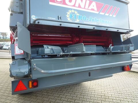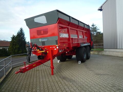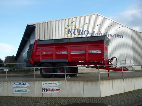 UNIA Tandemstalldungstreuer Tytan 24TD Überjährige Vorführmaschine aus 2024, jetzt zum attraktiven SONDERNETTOPREIS inkl. Horizontaler (Liegender) 2-Walzenadapter mit Streuteller Arbeitsbreite 12-24 m inkl. hydraulisch gesteuertes Grenzstreueinrichtung) inkl. Bereifung 700/50-26,5 anstelle Standardbereifung Technische Daten: Nutzlast 18.000 kg Eigengewicht ca. 8.225 kg Ladevolumen 22,0 + 4,5 m³ Ladehöhe: 3,65 m Kraftbedarf ca.190 PS, 1000 U/min Bereifung 600/55-26,5 Serienmäßige Ausstattung: Gefederte Deichsel zur Untenanhängung Gefedertes Tandem BOOGIE-Fahrwerk Nachlauflenkachse mit hydr. Sperrung hydraulischer Kratzbodenantrieb, stufenlos einstellbar hydr. Stauschieber Kratzboden mit 4 Ketten (2 Paar) Kettenglied Ø14 mm mechanischer Teleskopstützfuß 2-Leiter Luftdruckbremsanlage Handbremse Beleuchtung Kotflügel Weitwinkelgelenkwelle (830 Nm) Alle Preise zzgl. MwSt zzgl. Frachtkosten Finanzierung auf Anfrage möglichKontaktdaten: