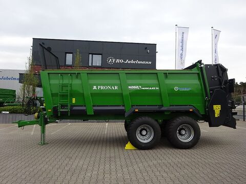 PRONAR Stalldungstreuer N 262/1 Tandem Überjährige Ausstellungsmaschine aus 2022, jetzt zum attraktiven SONDERNETTOPREIS inkl. Zusatzausstattung: - Nachlauflenkachse - Bereifung 600/55-22,5 - CoC-Ausführung - K80 - Weitwinkel-Gelenkwelle 6x6 Serienmäßige Ausstattung: 2 Streuwalzen liegend 2-Teller Breitstreuwerk 4 Ketten 14 mm Hydraulischer Kratzbodenantrieb Stufenlose Geschwindigkeit für Kratzboden Hydraulischer Stauschieber Hydraulische Heckklappe Stahlprofilbordwände Kotflügel Aufstiegsleiter 2-Leiter Druckluftbremse Kurbelbremse Hydraulischer Stützfuß vorderes Schutzgitter Beleuchtungsanlage 12 V Keile mit Halter Rahmen grün RAL 6010 Adapter grau RAL 7021 Technische Daten: Gesamtgewicht 20.000 kg Eigengewicht 7200 kg Nutzlast 14000 kg Ladevolumen 14 m³ Ladefläche 11,1 m² Pritsche innen LxB 5600 mm x 1955 mm Gesamtmaße LxBxH 9000/2510/3740 mm Bordwandhöhe 1265 mm Plattformhöhe 1530 mm Blechdicke (Boden/Bordwand) 4/3 mm Spurweite 1940 mm Parabelfederung Deichselaugetragkraft 2200 kg Max Geschwindigkeit 40 km/h Zapfwellendrehzahl 1000 U/min Max. Streubreite 25 m Bereifung 600/50 - 22,5 Alle Preise zzgl. Mwst ab Lager Itterbeck. Finanzierung und Anlieferung gegen Mehrpreis möglichKontaktdaten: