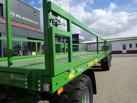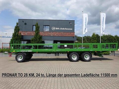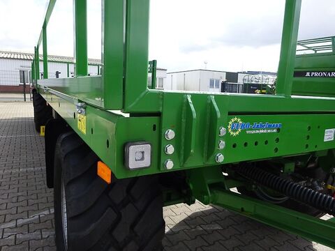 NEUFAGRZEUG: Pronar Flachwagen, Ballenwagen, TO 28, 24 to für Ballen- Kartoffelkisten- Gemüsekisten- und Obstkistentransport Seitliche Gitter abklapp- und abnehmbar Seitengitter 700 mm hoch Stirnwand 1200 mm hoch TO 23, 15 to GG Serienmäßige Ausstattung: V-Deichsel mit starrer Zugöse Ø 40 mm, 2-Kreis Druckluftanlage, Feststellbremse Plattformverlängerung nicht möglich Seitliche Begrenzung durch Aufkantung Unterfahrschutz hinten Beleuchtungsanlage mit seitl. Beleuchtung Unterlegkeile mit Halter Lackierung RAL 6010 Technische Daten Zul. Gesamtgewicht 15000 kg Eigengewicht ca. 3700 kg Nutzlast ca. 11300 kg Pritschenlänge ca. 9695 mm Pritschenbreite ca. 2435 mm Gesamtlänge ca. 12000 mm Gesamtbreite ca. 2500 mm Bordwandgitterhöhe ca. 1680 mm Plattformhöhe ca. 1100 mm Stahlboden TO 23 / TO 23 M ca. 3 mm / 4 mm Spurweite ca. 1730 mm Bereifung 400/60-15,5 Gegen Mehrpreis auf Anfrage: Staukasten für Spanngurte Kunststoffkotflügel vorne und hinten Seitlicher Anfahrschutz ALB-Regler Bereifung 400/55R17 Starco GU-783 TÜV-Gutachten und Betriebserlaubnis TO 26, 18 to GG Serienmäßige Ausstattung: V-Deichsel mit starrer Zugöse Ø 40 mm, 2-Kreis Druckluftanlage, Feststellbremse Seitliche Begrenzung durch Aufkantung Plattformverlängerung nicht möglich Unterfahrschutz hinten Beleuchtungsanlage mit seitl. Beleuchtung Unterlegkeile mit Halter Lackierung RAL 6010 Technische Daten Zul. Gesamtgewicht 18000 kg Eigengewicht ca. 4280 kg Nutzlast ca. 13720 kg Pritschenlänge ca. 9695 mm Pritschenbreite ca. 2435 mm Gesamtlänge ca. 12000 mm Gesamtbreite ca. 2500 mm Bordwandgitterhöhe ca. 1680 mm Plattformhöhe ca. 1180 mm Stahlboden TO 26 / TO 26 M ca. 3 mm / 4 mm Spurweite ca. 1820 mm Bereifung 500/50-17 Gegen Mehrpreis auf Anfrage: Staukasten für Spanngurte Kunststoffkotflügel vorne und hinten Seitlicher Anfahrschutz ALB-Regler Bereifung 500/50-17 BKT AW 708 Bereifung 520/50-17 TVS-EURO GRIP FL18 Bereifung 500/50R17 BKT FL 693 M RIDEMAX TÜV-Gutachten und Betriebserlaubnis TO 28, 24 to GG Serienmäßige Ausstattung: V-Deichsel mit starrer Zugöse Ø 40 mm 2-Kreis Druckluftanlage, Feststellbremse Plattformverlängerung nicht möglich Seitliche Begrenzung durch Profilaufkantung Unterfahrschutz hinten Beleuchtungsanlage mit seitl. Beleuchtung Unterlegkeile mit Halter Lackierung RAL 6010 Technische Daten Zul. Gesamtgewicht 24000 kg Eigengewicht ca. 5500 kg Nutzlast ca. 18500 kg Pritschenlänge ca. 9900 mm Breite total ca. 2540 mm Höhe total ca. 3760 mm Gesamtlänge ca. 12000 mm Bordwandgitterhöhe ca. 1640 mm Plattformhöhe ca. 1100 mm Stahlboden ca. 3 mm Spurweite ca. 1960 mm Bereifung 445/45 R 19.5 Gegen Mehrpreis auf Anfrage: Staukasten für Spanngurte Kunststoffkotflügel vorne und hinten Seitlicher Anfahrschutz ALB-Regler Bereifung 560/45R22,5 (Plattformhöhe + 16 cm) Bereifung 500/60R22,5 (Plattformhöhe + 27 cm) TÜV-Gutachten und Betriebserlaubnis Finanzierung und Anlieferung gegen Mehrpreis möglichKontaktdaten: