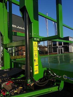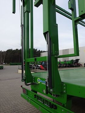 NEUFAHRZEUG: Pronar 3-Achs-Ballentransportwagen TO 28 M. (einschl. hydraulischer Ladungssicherung, 2 x DW erforderlich) Technische Daten: Gesamtgewicht 24000 kg Eigengewicht ca. 6950 kg Nutzlast ca. 17050 kg Länge Ladefläche ca. 9900 mm (nicht ausziehbar) Breite Ladefläche ca. 2470 mm Gesamtlänge ca. 12000 mm Gesamtbreite ca. 2545 mm Stahlbodenstärke 3 mm Spurweite 2060 mm Achsdurchmesser 100 mm Bremstrommel 406 x120 Parabelfederung Geschwindigkeit 40 km/h Plattformhöhe ca. 1110 mm Bereifung 445/45 R - 19,5 Plattformhöhe ca. 1270 mm (+ 16 cm) bei 560/45R22,5 (Optional erhältlich) Plattformhöhe ca. 1380 mm (+ 27 cm) bei 500/60R22,5 (Optional erhältlich) Serienmäßige Ausstattung: Hydraulische Ladungssicherung Plattform für Rungen vorgesehen V-Deichsel mit starrer Zugöse Ø 40 mm 2-Kreis Druckluftanlage, Feststellbremse Seitliche Begrenzung durch Profilaufkantung Unterfahrschutz hinten Beleuchtungsanlage mit seitl. Beleuchtung Unterlegkeile mit Halter Lackierung RAL 6010 Gegen Mehrpreis auf Anfrage: Staukasten für Spanngurte Kunststoffkotflügel vorne und hinten Seitlicher Anfahrschutz ALB-Regler Bereifung 560/45 R 22,5 Bereifung 500/60 R 22,5 TÜV-Gutachten und Betriebserlaubnis Hintere hydraulische Abstützung (aus eigener Herstellung) mit 2 Hydraulikzylinder, z. B. beim Befahren mit Minibagger, Radlader, Hoftrac usw., klappbare Stützen, 2 Bedienhebel, komplett montiert Finanzierung und Anlieferung gegen Mehrpreis möglich. Wir liefern folgende Pronar Ballenwagen: TO 22, 2-achs, 10 to GG, Plattformlänge max. 7270 mm TO 25, 2-achs, 12 to GG, Plattformlänge max. 7270 mm TO 27, 2-achs, 18 to GG, Plattformlänge max. 9600 mm TO 23, 3-achs, 15 to GG, Plattformlänge max. 10770 mm TO 26, 3-achs, 18 to GG, Plattformlänge max. 10770 mm TO 28, 3-achs, 24 to GG, Plattformlänge max. 11000 mm TO 24, Tandem, 12 to GG, Plattformlänge max. 7170 mm Ballenwagen, Ballentransportwagen, Strohwagen, Heuwagen, FlachwagenKontaktdaten: