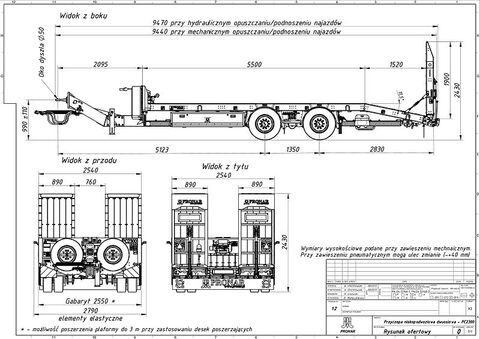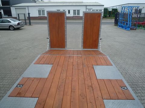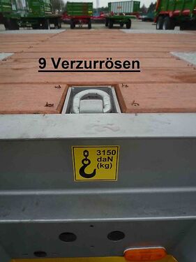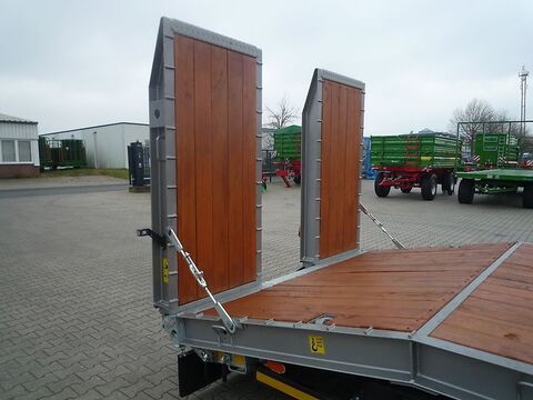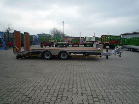 gebr. PRONAR-Tieflader PC 2300 Baujahr 2022, Fast wie neu, nie zugelassen Sondernettopreis EUR 28.500,-- zzgl. 19 % MwSt (Neupreis 39.220,-- zzgl. MwSt) Technische Daten: Zul. Gesamtgewicht 19000 kg (Achslast 18.000 kg) Eigengewicht 4500 kg Nutzlast 13500 kg (14.500 kg. ink. Stützlast) Plattformlänge gerade 5500 mm Plattformlänge schräg 1520 mm Plattformlänge gerade + schräg 7020 mm Plattformbreite 2540 mm Plattformbreite mit Verbreiterung 3000 mm Gesamtmaße LxBxH 9500/2550/2500 mm Plattformhöhe 950 mm Höhe der Zugöse +/- 1000 mm Auffahrrampenlänge 1900 mm Parabelfederung Maximale Geschwindigkeit 100 km/h Achsenhersteller ADR (ATW) Bremsanlage pneumatisch mit EBS Bereifung 235/75 R17,5 (143/141J) Serienmäßige Ausstattung: Mechanische Achsaufhängung (ATW) 2 Achsen (ATW) á 9 to mit Zwillingsräder ABS-Knorr Bremse auf beiden Achsen Deichselhöhe ca. 850 mm Mechanischer Stützfuß vorne – 1 Stck drehbar Mechanischer Stützfuß hinten, 2 Stck drehbar Trommelbremse Pneumatische Bremsanlage mit EBS Knorr-Bremse Zusätzliche Energieversorgung des EBS von der “Halt” Beleuchtung Elektroanlage 24V; nach ECE 48 EKG ONZ Mechanische Auffahrrampen Sicherheitssystem der Auffahrrampen (gegen ungewolltes Aufklappen) Seitliche Schutzeinrichtung nach Richtlinie 89/297/EWG Schmutzfänger nach Richtlinie 91/226/EWG 9 Zurringe im Boden Kotflügel Unterlegkeile mit Halter Lackierung graualuminium RAL 9007 Gegen Mehrpreis auf Anfrage: Begrenzungswände 500 mm hoch Warntafel mit Beleuchtung für Ladung mit Überlänge und Überbreite Rundumleuchte Stahlkiste 240 l für Holzbretter Werkzeugkiste (1 oder 2 Stück) (jeweils ~50 l) pro Stück Zulassungsunterlagen / ABE Finanzierung und Anlieferung gegen Mehrpreis möglich.Kontaktdaten: