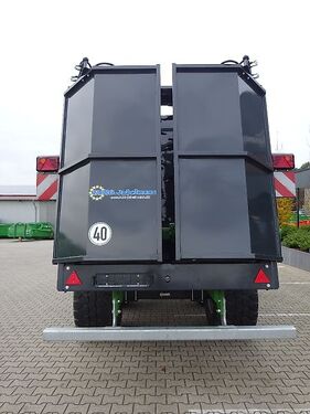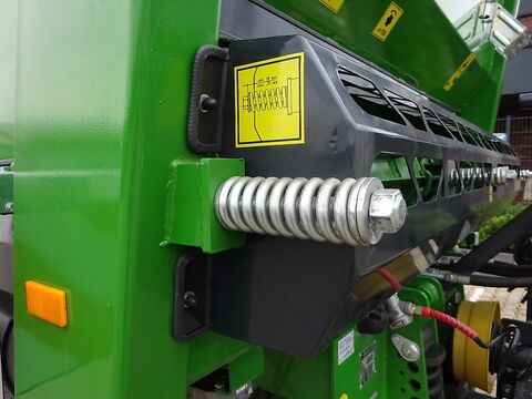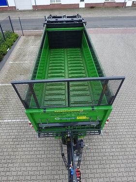 NEUMASCHINEN: PRONAR Stalldungstreuer N 262/2 Tandem Serienmäßige Ausstattung: Gefederte Deichsel mit Untenanhängung Teleskopstützfuß mit Getriebe 2-Leiter Druckluftbremse ALB Trommelbremse 406x140mm Achsabstand 1500 mm Kurbelbremse LED-Beleuchtungsanlage 12V Vorderes Spritzschutzgitter Hydraulischer Stauschieber Höhenanzeiger der Rückwand Vertikaler Adapter mit 2 Walzen Einleiter–Schmieranlage des Streuwerklagers Förderanlage mit vier Ketten aus Qualitätsstahl (14 mm), mit hydraulischem Antrieb und stufenloser Geschwindigkeitsregulierung Klappbare Aufstiegsleiter Metall-Kotflügel Weiß-rote Markierungstafeln vorne und hinten Keile mit Halter Lackierung: Grün RAL6010 / Grau RAL7021 Technische Daten: Zul. Gesamtgewicht 18.000 kg Eigengewicht 7600 kg Ladevolumen 18 m³ Pritsche innen LxB 5600 mm x 1955 m Gesamtmaße LxBxH 9000/2550/3750 mm Bordwandhöhe 1200 + 300 mm Plattformhöhe 1530 mm Blechdicke (Boden/Bordwand) 4/3 mm Spurweite 1940 mm Parabelfederung Deichselaugetragkraft 3000 kg Maximale Geschwindigkeit 40 km/h Zapfwellendrehzahl 1000 U/min Maximale Streubreite 12 m Bereifung 600/50 – 22,5 Zusätzliche Ausrüstung (gegen Mehrpreis) Zugöse Ø40 klein Lochbild 100x110mm K80 Kugelflanschzugöse klein Lochbild 100x110mm Nachlauflenkachse N262/2 mit optionaler Bereifung 600/55-22,5 ALLIANCE 328 (Standardbereifung bei der Nachlauflenkachse nicht zulässig) Nachlauflenkachse hinten mit Hydr. Sperrung Hydraulische Grenzstreueinrichtung bei Streuwerk mit stehenden Walzen - Eine Streuwerksabdeckung ist Pflicht im öffentlichen Straßenverkehr - Weitwinkel-Gelenkwelle 6x6 anstelle Standardgelenkwelle Unterfahrschutz N262/ N262/1 - zwingend erforderlich im öffentlichen Straßenverkehr - Zulassungsunterlagen / ABE / Datenbestätigung für Deutschland Anlieferung und Finanzierung gegen Mehrpreis möglich.Kontaktdaten: