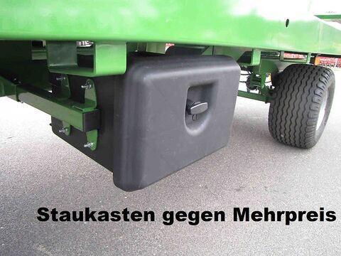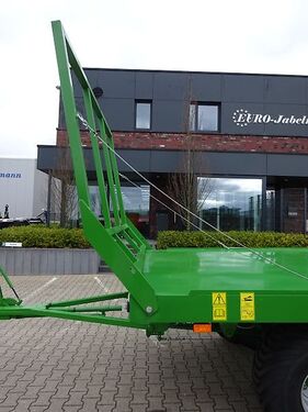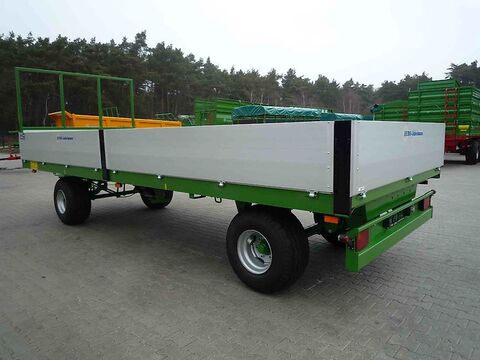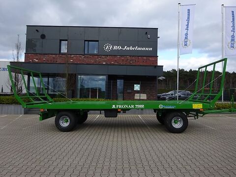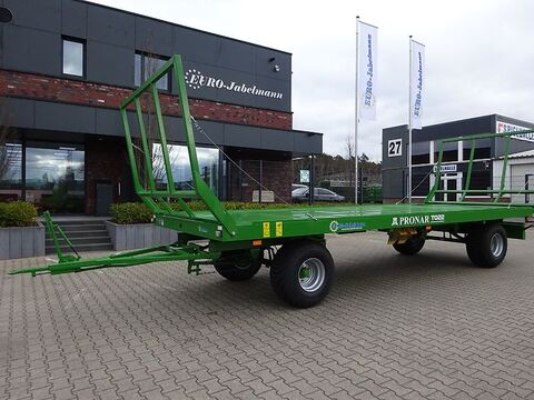 Pronar 2-Achs-Ballentransportwagen TO 22, 10 to Auflaufbremse / Druckluft TO 22, 10 to, 2-Kreis Druckluftbremsanlage 40 km/h Zulassung EUR 13.560,-- zzgl. 19 % MwSt = EUR 16.136,40 TO 22 M, 10 to, 2-Kreis Druckluftbremsanlage 40 km/h Zulassung EUR 14.470,-- zzgl. 19 % MwSt = EUR 17.219,30 TO 22, 8 to, Auflaufbremse mit Rückfahrautomatik 25 km/h Zulassung EUR 15.160,-- zzgl. 19 % MwSt = EUR 18.040,40 TO 22 M, 8 to, Auflaufbremse mit Rückfahrautomatik 25 km/h Zulassung EUR 16.050,-- zzgl. 19 % MwSt = EUR 19.099,50 Technische Daten für TO 22: Zul. Gesamtgewicht 10000 kg (8000 kg bei Auflaufbremse) Eigengewicht ca. 2640 kg Nutzlast ca. 7360 kg Pritschenlänge ca. 6500 mm Ladelänge bei ausgezogener Verlängerung ca. 7270 mm Pritschenbreite ca. 2435 mm Gesamtlänge ohne Verlängerung ca. 9135 mm Gesamtbreite ca. 2500 mm Bordwandgitterhöhe ca. 1680 mm Plattformhöhe ca. 1100 mm Stahlboden ca. 3 mm Spurweite ca. 1730 mm Bereifung 400/60-15,5 Serienmäßige Ausstattung für TO 22: Zulässiges Gesamtgewicht 10000 kg. (bei Auflaufbremse 8000 kg) V-Deichsel mit starrer Zugöse Ø 40 mm, Feststellbremse Plattformverlängerung möglich Seitliche Begrenzung durch Aufkantung Ladegitter vorne und hinten klappbar Unterfahrschutz hinten Beleuchtungsanlage mit seitlicher Beleuchtung Unterlegkeile mit Halter Lackierung RAL 6010 Modelle M: Ladefläche mit abgerundeten Kanten Löcher an den Plattformrändern 4 mm Bodenstärke Gegen Mehrpreis auf Anfrage: Staukasten für Spanngurte Kunststoffkotflügel vorne und hinten Seitlicher Anfahrschutz ALB-Regler TÜV-Gutachten und Betriebserlaubnis Finanzierung und Anlieferung gegen Mehrpreis möglich Ballenwagen, Ballentransportwagen, Strohwagen, Heuwagen, FlachwagenKontaktdaten:
