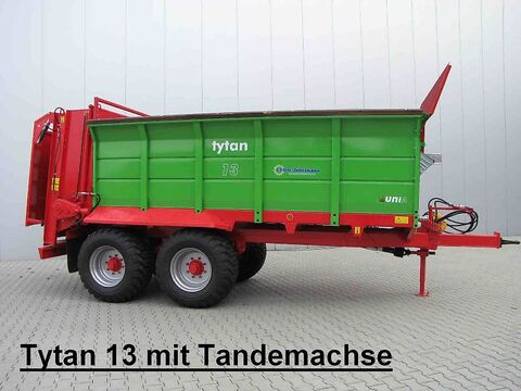 UNIA Stalldungstreuer in Ganzstahlausführung. Modell: Tytan. Als Einachser in 7, 8 und 10 to. Als Tandem in 11, 13, 18 und 24 to. Als Tridem 27, 30 to. Verschiedene Walzensysteme auch mit Tellerstreuwerk. Das komplette Programm mit allen Zusatzausrüstungen und Zubehör sowie Preise finden Sie bei uns im Web unter www euro-jabelmann de. (Dung- und Düngerstreuer). Anlieferung und Finanzierung gegen Mehrpreis möglich.Kontaktdaten: