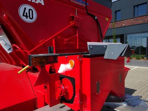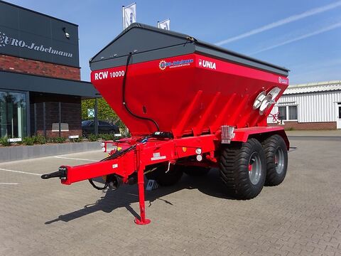 UNIA Großflächenstreuer RCW 110, Tandem Technische Daten: Eigengewicht 4400 kg Ladevolumen 11,0 m³ Höhe der Streuteller über den Boden: 80 cm Arbeitsbreite für Düngergranulat 10-36 m Arbeitsbreite für Kalk 8-16 m Ladehöhe: 2,80 m Kraftbedarf ca. 130-170 PS Bereifung 550/60 x 22,5 Serienmäßige Ausstattung: Bandförderantrieb über das Antriebsspornrad (optional hydr.) mechanischer Antrieb der Streuteller Streuteller für Dünger und Kalk aus Edelstahl Grenzstreuscheibe Ladebehältersiebe Obenanhängung Gefederte Tandemachse mechanischer Teleskopstützfuß 2-Leiter Luftdruckbremsanlage Handbremse Beleuchtung Weitwinkelgelenkwelle (620 Nm) Optional (gegen Mehrpreis) erhältlich: -Grenzstreueinrichtung mechanisch oder hydraulisch klappbar -Abdeckplane hydraulisch klappbar -Breite Bereifung Anlieferung und Finanzierung möglich Bitte beachten Sie unter dem Link „Rechtliche Angaben“ wichtige Hinweise.Kontaktdaten: