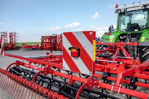 * * * Lagergeräte i.d.R. verfügbar * * * » Grundausstattung « - Arbeitsbreite 6,0 m - Mittige hydr. Klappung (2-teilig) mit 2 Zylindern - Edition „Meteor II“: Zusätzliche Verstärkung (Dreieck) am Dreipunktbock Exakte Zinkeneinteilung Lieferung/Abholung im endmontierten Zustand (einsatzbereit) LED-Beleuchtung m. Blinker-Kontrolle (optional) - Sehr stabile Ausführung - Mech. Einstellung der Arbeitstiefe (Lochmuster) - 4 Reihen, teils vergrößerter Balkenabstand - 38 Zinken 50x12 mm mit Schmalscharen (gegen Aufpreis Zinken 70x12 mm) - Symetrische Zinkenanordnung (Vermeidung von Seitenzug) - Anhängung Kat. II / III - Inkl. Stabwalze 400 mm oder Rohrwalze 540 mm - Gewicht (Zinken 70x12, Striegel, Bel.): ca. 2.200 kg »» Zusatzausstattung (gegen Aufpreis) «« - Herkuleszinken 70x12 mm (mit Gänsefuß- oder Schmalscharen) - Hartmetallschare - Dachringwalze - U-Ringwalze - T-Ringwalze - Federringwalze - Striegel - LED-Beleuchtung - APV-Streuer Langjährig bewährte Maschine, wurde von TopAgrar getestet (Ausgabe 03/2013). Weitere verfügbare Varianten: - Arbeitsbreiten 3,0 - 7,5 m ACHTUNG: Der Preis bezieht sich auf die Grundausstattung! Die Bilder zeigen u.U. aufpreispflichtige Zusatzausstattung! Preise und technische Änderungen unter Vorbehalt! Lieferung gegen Aufpreis möglich! Rufen Sie uns an! Wir beraten Sie gerne und erstellen Ihnen ein konkretes Angebot!