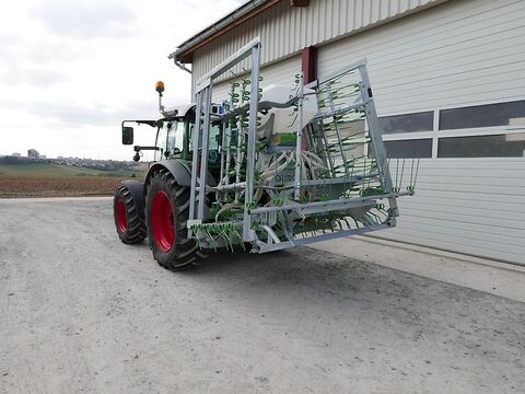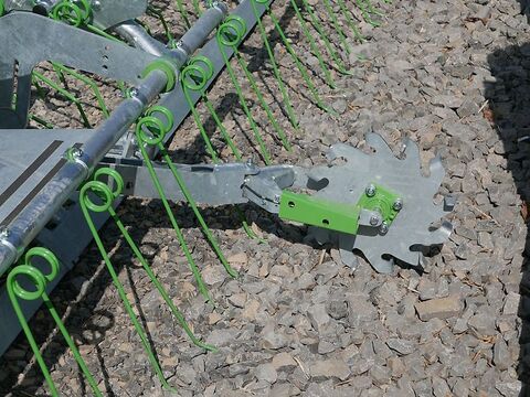 » Grundausstattung « - Arbeitsbreite 6,0 m, hydr. klappbar - Feuerverzinkter, stabiler Rahmen (Winkeleisen 80 x 8) - 2 dw Klappzylinder, jeweils mit seitlicher Transportverriegelung - Transportverriegelung vom Traktor aus bedienbar - Sehr robuste Doppelscharniere vorne, breites Scharnier hinten - 3 Zinkenreihen mit 10 mm-Zinken - Striegelzinken mit 12-facher Tiefenverstellung - Verstärkte Ecken, 6 Gleitschuhe - Aufhängung Kat. II - Maße (ca. B x H x T): 2,66 x 2,15 x 1,70 m - Gewicht (Grundausstattung): ca. 635 kg - Made in Holland »» Zusatzausstattung (im Preis enthalten) «« - Zocon Sägerät Z300 Professional (incl. Montage; elektr. Gebläse, 10 Prallteller, elektr. angetriebene Säwelle mit Schnellwechselsystem) - 7-pol Signalkabel »» Zusatzausstattung (gegen Aufpreis) «« - 4. Zinkenreihe - Aufstiegstreppe - Bodenrad + Sensor - Beleuchtung Dieser Wiesenstriegel aus hochwertiger niederländischer Produktion vereint die Vorteile von einem normalen Striegel und den günstigen Wieseneggen. Maulwurfshügel werden sauber eingeebnet und die Grasnarbe gut belüftet. ACHTUNG: Der Preis bezieht sich auf die Maschine inkl. der genannten Zusatzausstattung Die Bilder zeigen teils weitere aufpreispflichtige Zusatzausstattung! Preise und technische Änderungen unter Vorbehalt! Lieferung gegen Aufpreis möglich! Rufen Sie uns an! Wir beraten Sie gerne und erstellen Ihnen ein konkretes Angebot!