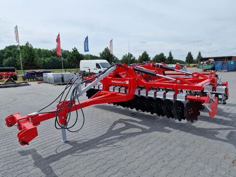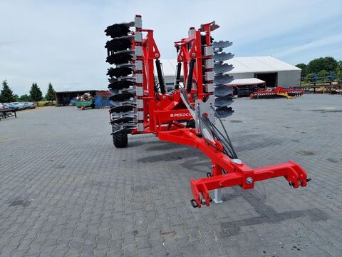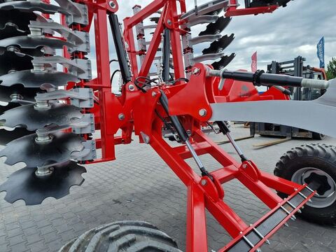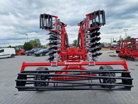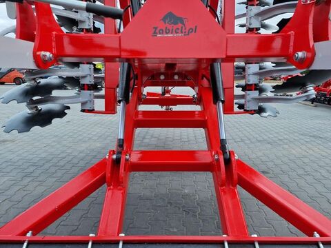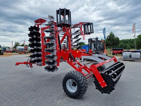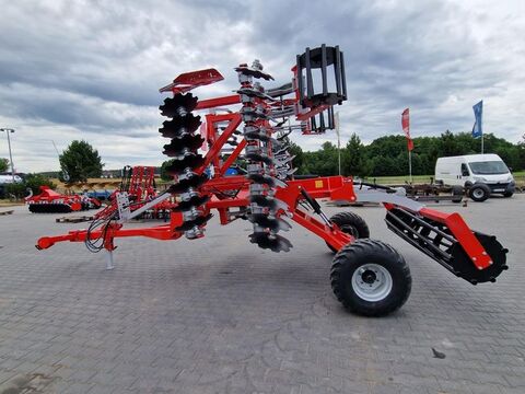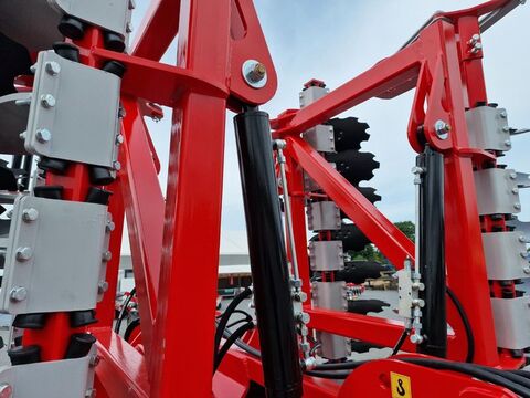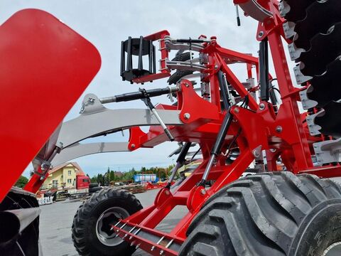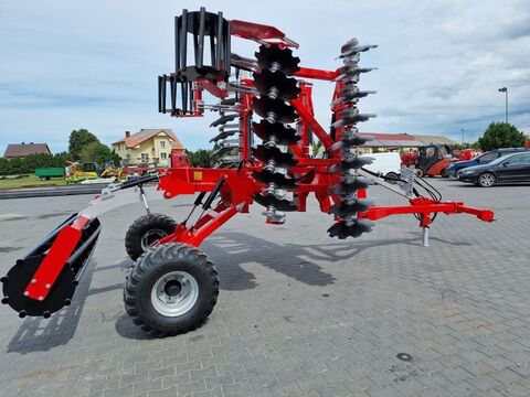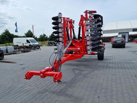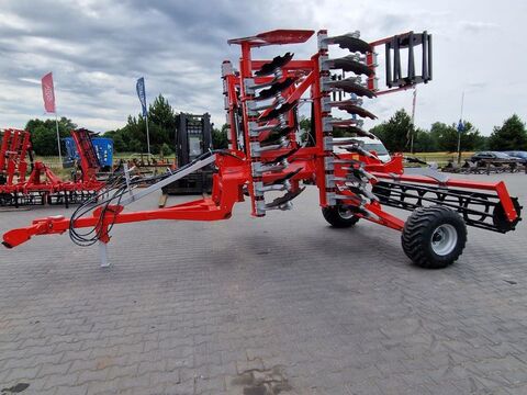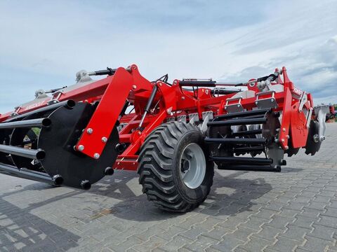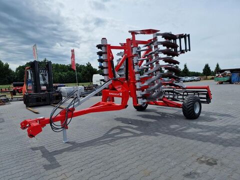 Brona talerzowa hydraulicznie składana, z wózkiem jezdnym SPEEDCUT BTH-400 Waga 3780 kg ( wyposażenie podstawowe) Zapotrzebowanie mocy 115-160 KM Liczba talerzy 28 Wyposażenie podstawowe: - dwa rzędy uzębionych talerzy q560 -zabezpieczenie gumowe - piasty bezobsługowe 4-otworowe -ekrany boczne pływające - wał rurowy q 530 -regulacja głębokości za pomocą łącznika z grzechotką -hydraulicznie składana na 4 siłowniki -ekrany boczne -rozstaw między rzędami talerzy 100 cm - wózek jezdny OPCJE DODATKOWE - hydrauliczna regulacja głębokości pracy - talerze q 610 ( w zestawie z piastami 6-otworowymi; średnica wałka 30mm) - wał C-ring q 500/600 - wał T-ring q 500/600 - wał V-ring q 500/600 - wał strunowy - wał packer - wał KRAKER - wał CROSSKILL - wał pierścieniowyKontaktdaten: