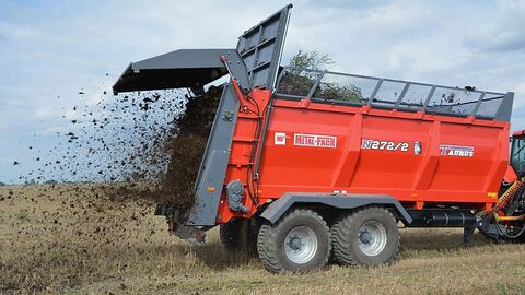 Wolf-Landtechnik verkauft Metal-Fach N272 /1 ZENI 12 VERTI Tonen Miststreuer. Der angegeben Preis ist für die Standardausstattung. Standardausstattung: Stauschieber Horizontaler 2-Rotor-Adapter mit mechanischem Deflektor Hydraulische Deflektoren Leiter Feste Zugöse Ø50mm Weitwinkelgelenkwelle Zweikreisige pneumatische Bremsen Räder 550/60-22,5 4-teilige Hydraulik Hydraulischer Fuß Seitenenden - Gummistreifen Stützkeile Hinterer Balken Unterfahrschutz Elektronische Bodensteuerung (kabelgebundene Fernbedienung +/-))) zusätzliche Ausstattung (gegen Aufpreis): Vollaufsätze 0,5 m Gitteraufsätze 0,5 m Gitteraufsätze 0,8 m Hydraulische Bremsen Duomaticbremsen Räder 600/55-22,5″ Räder 650/55-26,5" Räder 710/45-22,5” Automatischer Bremskraftregler – ALB-Ventil Zugöse Ø 40 Drehbare Zugöse Ø 50 Kugelkopfkupplung K80 4-Wege-Verteiler mit adaptiver Hydraulikanlage Elektronische Präzisionsbodensteuerung (Drehknopf für stufenlose Geschwindigkeitsregelung) EU-Zulassung Lackieren des Kastens in einer anderen Farbe als Standardfarbe Gesamte L/B/H - 8350/ 2545 / 3330 [mm] Innenmasse L/B/H - 5000 / 2000 / 1280 [mm] Eigengewicht - 5920 [kg] Ladehöhe: -2,79m Leistungsbedarf: -min 120 ps