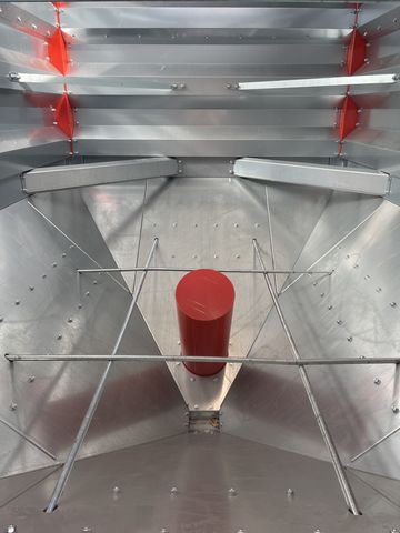 Ausstellungssilo - leichte optische Beeinträchtigungen wird nur zusammengebaut verkauft (wie am Foto ersichtlich) OHNE FÖRDERTECHNIK Trichter: 35° für Getreide, Abm. 3002 x 2102 mm, Höhe = rund 1600 mm Auslaufhöhe ohne Schieber: 450 mm Trichteraufbau: Höhe 1600 mm Gesamthöhe: 3200 mm (Trichter + 2 Ringe) inkl. Einstiegsluke mit Sichtfenster, Belüftungsrohr OPTIONAL: - Erhöhung um 1 Ring/800 mm (4,60m³/Ring) = Gesamtfassung ~ 16,60 m³ für 800,00€ - Erhöhung um 2 Ringe/1600 mm (5,10m³/Ring) = Gesamtfassung ~ 21,20 m³ für 1.600,00 € Frachtkosten auf Anfrage!Kontaktdaten: