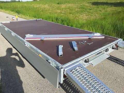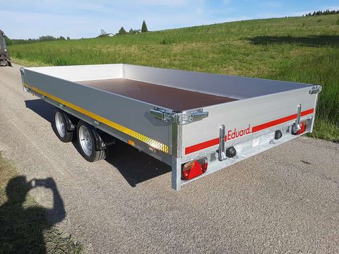 Achtung: Besichtigung nur nach Terminvereinbarung! Neu! Eduard PKW-Anhänger Hochlader 4x2m Mit dabei: Auffahrschienen im Schacht Stützen COC Papiere fertig zum Anmelden Technische Daten: Ladefläche: 4,06m x 2,0m Bordwände: 30cm Gesamtgewicht: 3.000 kg Eigengewicht: 666 kg Nutzlast: 2.334 kg Bereifung: 195/50R13 (auch mit 10" lagernd, Ladehöhe 56cm) Ladehöhe: 63 cm Ausstattung: Geschweißte Rahmenkonstruktion im Tauchbad feuerverzinkt ! Bordwände klappbar, abnehmbar Knott Auflaufaggregat mit Rückfahrautomatik. Gummifederachsen mit Einzelradaufhängung Durchgehender Siebdruckboden Stecker 13 pol. Bodenplatte Multiplex aus einem Stück! Automatik Stützrad Ladungssicherung: 34 Zurrpunkte (20 Zurrbügel innen, 14 Seilhaken außen) Zubehör optional: Flachplane Hochplane Aufsatzbordwände 30cm, 40cm oder 70cm Laubgitter 70cm H-Gestell Gurtenkiste Ladegutnetz Spanngurte usw. Preis € 4.890,- inkl. MwSt. Besichtigung nur möglich nach telefonischer Absprache! Standort A-4720 Kallham Bei Interesse einfach anrufen Abbildungen können mit und ohne Sonderausstattung dargestellt sein.Die technischen Daten beziehen sich auf das Serienfahrzeug. Für Irrtümer und Schreibfehler wird keine Haftung übernommen. Weiters bei uns am Hof: PKW-Anhänger, Autotransportanhänger, Dreiseitenkipper, Kipper, Hochlader, Tieflader, Einachsanhänger, Zweiachsanhänger, Plattformanhänger TinyHouse Anhänger,Tandemanhänger, Dreiachsanhänger, Baggertransporter, Baggeranhänger, Kofferanhänger, Motorradtransporter, Viehanhänger, Pferdeanhänger, Kofferanhänger, Kühlanhänger, Maschinentransporter, Baumaschinentransporter ...Zul. Gesamtgewicht (t): 3