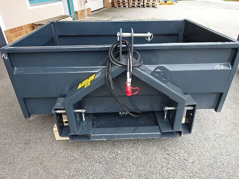 Heckcontainer- Kippmulden für Heck und Frontanbau - Hydraulisch Auskippbar- in den Breiten 1,4 Meter -1,6 Meter / 1,8 Meter / 2 Meter - Dreipunktanbau - auch Anbau an Gabel möglich - mit Rückwand ************************************************************** Gewichte circa Heckcontainer mit Zylinder 100 225 kg - Nutzlast ca. 360 kg Heckcontainer mit Zylinder 120 240 kg - Nutzlast ca. 430 kg Heckcontainer mit Zylinder 140 250 kg - Nutzlast ca. 500 kg Heckcontainer mit Zylinder 160 260 kg - Nutzlast ca. 570 kg Heckcontainer mit Zylinder 180 270 kg - Nutzlast ca. 650 kg Heckcontainer mit Zylinder 200 285 kg - Nutzlast ca 740 kg ************************************************************ Preise incl. Mwst. für folgende Breiten 1,4 Meter 1350 Euro 1,6 Meter 1450 Euro 1,8 Meter 1550 Euro 2 Meter 1650 Euro ************************************************** Angebot gültig nur solange Verfügbar bzw. keine Änderungen eintreten Irrtum und Zwischenverkauf vorbehalten - Versand möglich - Frachtkosten auf Anfrage Hartl Martin Landmaschinen
