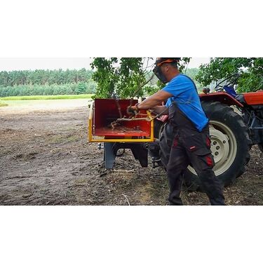 Preis inkl. 19% MwSt. Holzhacker Remet R-80 Neugerät Zapfwellenantrieb (auch mit Förderband, Motor, Elektro, auf Anhänger lieferbar) Der Holzhacker R-80 STANDARD ist ein Walzenholzhacker zur Zerkleinerung der Äste von bis zu 7 cm Durchmesser, ausgelegt und hergestellt im Werk Remet CNC Technology. Geschweißte Konstruktion ist völlig zerlegbar und sorgt für die Steifigkeit und Stabilität. Wir verfügen über moderne CNC-Maschinen und sind imstande die entsprechende Qualität, Genauigkeit und gleichachsiges Getriebe zu erzielen, damit Sie mit Ihrer Maschine länger arbeiten und sich über die Arbeit freuen können. Der Holzhacker kann mit der Schwungmasse/ dem Antriebsrad, dem Förderband oder doppeltem Sachkhalter ausgestattet werden. Das Förderband kann parallel oder senkrecht zum Gerät angebaut werden. -Mindest / empfohlene Leistung 10/20 PS -Gewicht 130 kg -Max. Schnittdurchmesser von Ästen (frisches Weichholz) 70 mm -Max. Schnittdurchmesser von Ästen (frisches Hartholz) 60 mm -Max. Schnittdurchmesser von Ästen (trockenes Hartholz) 50 mm -Messerstärke 8 mm -Länge von geschnittenen Ästen (4N) 9-15 cm / (6N) 5-10 cm -Ausführung der Schneidmesser Stal HARDOX typ 500 -Einwurfstrichter 62/38 cm -Anbausystem der Holzhackmaschine Dreipunkt-Aufhängung -Haken an die Anhängerzeugöse 1000 kg Spezifikation: geschweißte Konstruktion (völlig zerlegbar) verlängerte Achste zur Montage der Schwungmasse oder des Antriebsrads einstellbare lichte Weite zwischen den Messern induktiv gehärtete Zahnräder langer, ausklappbarer Einlasstrichter Kugelkopf Dreipunkt-Montagesystem für den Traktor Weitere Modelle: R-60 - 963,00 Euro R-80 - 1.160,00 Euro R-100 - 1.366,00 Euro R-120 - 1.612,00 Euro R-150 - 2.272,00 Euro Preise mit 4 Messern, mit 6 Messern gegen Aufpreis erhältlich Auch mit Förderband, Elektromotor, Benzin Motor, auf Anhänger Fahrgestell lieferbar. Transportkosten innerhalb Deutschland: auf Anfrage Transportkosten innerhalb Europa: auf Anfrage- PDF Datenblatt