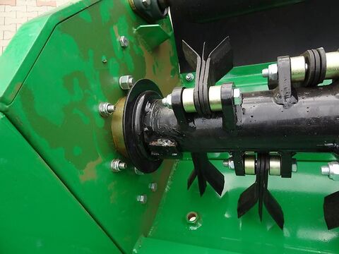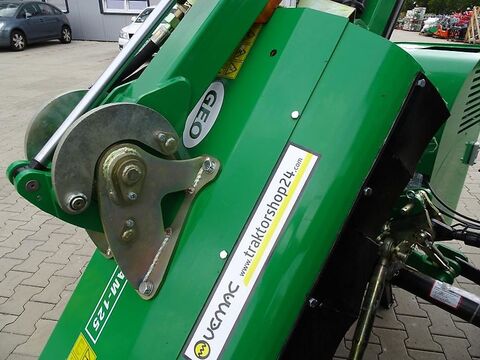 Besuchen Sie auch unseren Online-Shop www.traktorshop24. com Böschungsmulcher Geo AM125 125cm Arbeitsbreite inklusive Y-Messer Neugerät inklusive Ölkühler Der ideale Böschungsmulcher für Kompakttraktoren, besonders geeignet zum Mähen und Mulchen von Böschungen oder Gräben, Waldrändern, Pferdekoppeln, Gestrüpp, oder seitlich versetzt hinter dem Schlepper angebaut. Dieser Mulcher verfügt über einen eigenen Hydrauliköltank, so dass Sie zum Betrieb dieses Mulchers nur einen Zapfwellenanschluß benötigen. Desweiteren verfügt das Gerät über einen eigenen Ölkühler. Die Zapfwelle des Traktors treibt die Hydraulikpumpe am Mulcher an, so dass die unterschiedlichen Arbeitspositionen des Mulchkopfes eingestellt werden können. Neigungswinkel und seitlicher Versatz sind jeweils separat hydraulisch verstellbar. Die Bedienung des Mulchers erfolgt über ein Steuerventil mit mehreren Hebeln, welches Sie an einer geeigneten Stelle im oder am Traktor befestigen können. Der Anbau erfolgt an den Heck-Drei-Punkt Kat.2 des Traktors mit einer Zapfwellendrehzahl von 540 U/min. Ausgestattet ist der Mulcher mit pendelnd aufgehängten Y-Messern, die versetzt auf der Schlegelwelle verteilt sind. Die Messer sorgen für einen sauberen Schnitt der Wiese. Weiterhin können auch kleinere Äste problemlos gemulcht werden. Eine Nachlaufwalze am Heck des Mulchers sorgt für die Regulierung der Schnitthöhe. Schlegelwelle und Nachlaufwalze laufen in schmierbaren Lagern, die von aussen leicht zugänglich sind. Auch alle Schwenkarme und Schwenkbolzen sind mit Schmiernippeln versehen, so dass sich diese sehr leicht Abschmieren lassen. An der Frontseite des Mulchers sorgt eine Klappe dafür, dass keine Gegenstände wie Steine oder Mulchgut aus dem Mulchgehäuse austreten können. Das Mulchgehäuse besteht aus 4mm starkem Stahl, die Aufhängung ist 6mm stark. Aufgrund des geringen Gewichtes sind diese Mulcher speziell für Kompakttraktoren ab 50PS geeignet. Technische Daten: - Arbeitsbreite Mulchkopf: 125cm - Höhe Ausleger max ca. 490 cm - Seitlicher Versatz in Stellung unten: ca. 460 cm ab Mitte Zapfwelle bis Außenkante Mulcherkopf - Messer: 40 Stück Y-Messer - Materialstärke Mulchgehäuse: 5cm - Materialstärke 3-Punkt-Aufnahme: 6cm - Durchmesser Nachlaufwalze: 10cm - Durchmesser Schlegelwelle: 11cm - Hydrauliköl: 125 Liter - Gewicht: 700kg - Leistungsbedarf: ab 50PS Die Lieferung des Mulchers erfolgt fertig montiert mit allen Ölen und abgeschmiert. Transportkosten innerhalb Deutschland: 190,00 Euro inkl. 19% MwSt. Transportkosten innerhalb Europa: auf Anfrage Wir haben auch andere Anbaugeräte wie Volumenschaufel, Hochkippschaufel, 4-in-1 Klappschaufel, Palettengabel, Mistgabel, Ballenspieß, Krokodilgebiss, Silageschaufel, Holzgreifer, Ballenzange, Gummischiebeschild, Betonmischer, Schneeschilder lieferbar! Viele Anbaugeräte wie Bodenfräsen, Mulcher, Mähwerke, Anhänger, Holzhäcksler usw. lieferbar. VEMAC GmbH Lange Göhren 7b 39171 Osterweddingen / Magdeburg Tel. 039205 - 43 46 10 Fax: 039205 - 43 46 11 www. traktorshop24. com- PDF Datenblatt