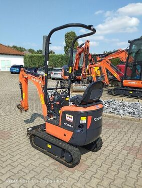 Kubota K008-5 Bj. 2022 Abverkauf aus Mietpark, gepflegte Maschine, sofort einsatzbereit Wenig Stunden (unter 400) 15900 € netto zzgl. MwSt. Finanzierung und Lieferung deutschlandweit möglich Unsere Erfahrungen haben gezeigt, dass die meisten Fragen schnell und unkompliziert in eine kurzen Telefonat geklärt werden können. Also zögern Sie nicht bei ernsthaftem Interesse uns anzurufen, wir freuen uns auf Ihren Anruf. Bitte haben Sie Verständnis, dass wir aufgrund erhöhter Nachfrage nicht jede Nachricht sofort schriftlich beantworten können. -Maschinengewicht 975 kg -Grabtiefe 1720 mm -Spurbreite 725-860 mm -Kubota Dieselmotor Stufe V mit 7,4 kW / 10,2 PS, 3-Zylinder -Tankinhalt 12 l -Zusatzkreis doppeltwirkend -Gummiraupe -Überrollbügel klappbar -LED-Licht am Ausleger -Oranger Sicherheitsgurt mit Gurtalarm Ton -Kubota Anti-Diebstahlsicherung -Motor-Neutralstart -Schnellwechsler MS01