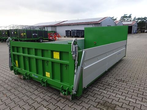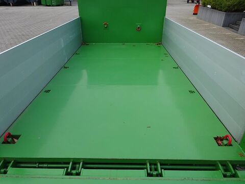 NEUCONTAINER: EURO-Jabelmann Container STE 4500/Plattform mit ALU-Bordwänden Containerinnenmaße L x B x H 4500/2500/800 mm, Ladefläche 11 m² , Gewicht ca. 1600 kg. z. B. für Pronar Containerfahrzeug T 185 Aufnahmebeschläge für Hakensysteme nach DIN 30722-1 (15.000 kg) mit heckseitigen Außenrollen und Unterrahmen aus INP 180 Stirnwandinnenhöhe ca. 1500 mm Ohne C-Verriegelung, mit C-Flacheisen Außenrollen abschmier- und wechselbar Aufnahmebügel Ø 50 mm, Hakenhöhe 1570 mm Anschlagbock verlängert auf 170 mm Bodenwanne aus 5 mm St 37.2 ALU-Bordwände seitlich Höhe ca. 800 mm, abklappbar und herausnehmbar 6 Stück im Boden eingelassene Schwerlastzurrösen á 2,5 t 4 Stück im Boden eingelassene Schwerlastzurrösen á 5,0 t 2 Stück an der Stirnwand aufgesetzte Schwerlastzurrösen á 5,0 t überfahrbare Pendelklappe am Heck, pendelbar und abklappbar, federentlastet und überfahrbar, mit Verschlusshaken und mit seitlichem Sicherheitszentralverschluss nach UVV ACHTUNG: Abklappbare Funktion nur im abgesetzten Zustand nutzbar Umlaufend Planen- und Netzhaken Plattform doppelt grundiert und doppelt einfarbig in RAL 6010 (Grasgrün) lackiert UVV-Aufkleber mit Sicherheitshinweisen ALU-Bordwände unlackiert Behälter geprüft und abgenommen nach BGR 186 Gewicht ca. 1600 kg Anlieferung und Finanzierung gegen Mehrpreis möglich. Container, Hakenliftcontainer, Abrollcontainer, Halfpipecontainer, Plattformcontainer, Trocknungscontainer, HardoxcontainerKontaktdaten:
