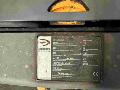 CROWN Elektrohubwagen WP 3015 Baujahr: 2016 68 Betriebsstunden laut Zähler Tragkraft: 1600 kg Gabellänge: 1150 mm Bereifung: Polyurethan - Batterie 24 V - Ladegerät GUTER ZUSTAND ! servicegepflegtes Gerät ! Für etwaige Rückfragen steht Ihnen Herr Thomas Lehner natürlich gerne zur VerfügKontaktdaten: