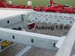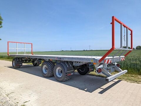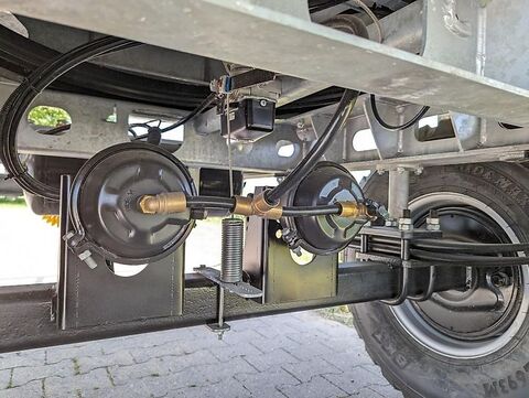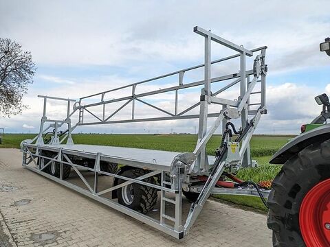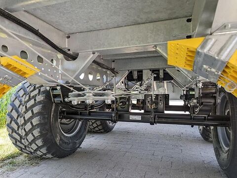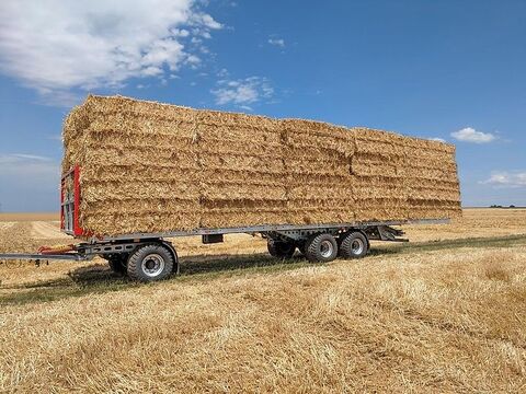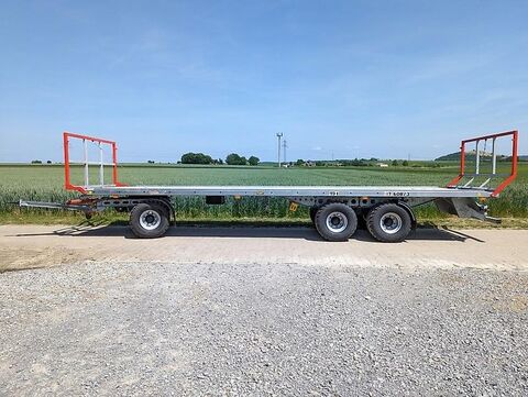 » Grundausstattung « - 3-Achs-Ballenwagen, 19 t GG - Ausführung 40 km/h - Mezger Edition: Eckiges Frontgitter Rote Lackierung der Front-/Heckgitter Mittiges Halteseil für die Gitter Rot-weiße Warnaufkleber hinten Kotflügel vorne - Auszug hinten ca. 1.000 mm, manuell ausziehbar (gegen Aufpreis auch hydraulisch), bis 1.000 kg belastbar - Nutzbare Plattformlänge ca. 10.055 mm (ohne Auszug) - Nutzbare Plattformlänge ca. 11.055 mm (Auszug komplett ausgezogen) - Für ca. 34 Rundballen oder 40 Quaderballen, je nach Größe - Außenbreite ca. 2.550 mm, Innenbreite ca. 2.430 mm - Brückenhöhe ca. 1.190 mm - Boden 4 mm mit seitlicher Kante (Vierkantrohr) - Zurrpunkte seitlich und unter der Brücke zur Ladungssicherung - Zweileitungs-Druckluft-Bremsanlage ALB-Regler - Achsen ADR, Achsvierkant 90 x 90 mm mit Parabelfederung 2 Bremszylinder je Achse (mit mechanischem Gestängesteller) - Technische Traglast: 1 x 9.200 kg (vorne), 2 x 8.500 kg (hinten), bei 40 km/h - Spurweite 1.900 mm - Achsabstand 4.870 mm (Achse 1-2) - Parabelfederung - Bereifung 500/50-17 (gegen Aufpreis Radial-Bereifung) - Y-Deichsel mit wechselbarer Zugöse 40 mm - LED-Positionsleuchten hinten und vorne - LED-Seitenbegrenzungsleuchten - 2 Stück Unterlegkeile mit Halterung - Boden und Rahmen verzinkt - Nutzlast laut Hersteller: ca. 14.520 kg - Gewicht laut Hersteller ca. 4.480 kg »» Zusatzausstattung (gegen Aufpreis) «« - Werkzeugkiste für die Gurte - Radial-Bereifung 500/50 R17 (BKT, Ascenso oder Tianli) - Auszug hydr. ausziehbar - Seitlicher Unterfahrschutz - EU-Gutachten 40 km/h Weitere verfügbare Varianten: - 2-Achs 14 t, 3-Achs 19 und 24 t - Ballenwagen mit hydraulischer Sicherung ACHTUNG: Bei Benutzung des Auszugs auf öffentlichen Straßen StVO beachten! Der Preis bezieht sich auf die Grundausstattung! Die Bilder zeigen u.U. aufpreispflichtige Zusatzausstattung! Preise und technische Änderungen unter Vorbehalt! Lieferung gegen Aufpreis möglich! Rufen Sie uns an! Wir beraten Sie gerne und erstellen Ihnen ein konkretes Angebot!