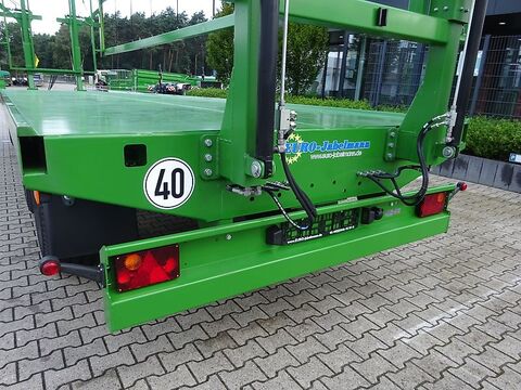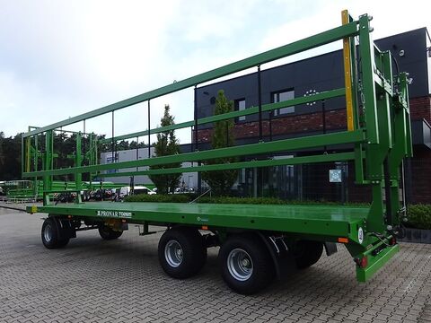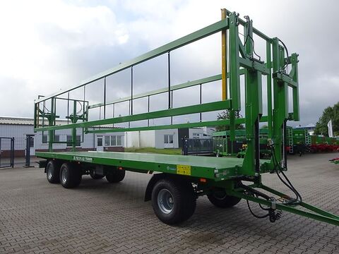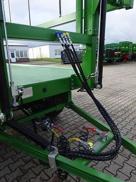 NEUFAHRZEUG in kompletter Ausstattung: PRONAR Ballenwagen TO 26 M, 18 to., Druckluft, 3-Achser einschl. CoC-TÜV, ALB, Staukasten, Kotflügel (einschl. hydraulischer Ladungssicherung, 2 x DW erforderlich) Serienmäßige Ausstattung: Zulässiges Gesamtgewicht 18000 kg. V-Deichsel mit starrer Zugöse Ø 40 mm, 2-Kreis Druckluftanlage, Feststellbremse ALB-Regler Kotflügel vorne und hinten Hydraulische Ladungssicherung Staukasten Seitliche Begrenzung durch Aufkantung Unterfahrschutz hinten Beleuchtungsanlage mit seitl. Beleuchtung Unterlegkeile mit Halter Lackierung RAL 6010 Plattform mit seitlicher Profilaufkantung, Ladefläche mit abgerundeten Kanten, Löcher an den Plattformrändern, 4 mm Bodenstärke. Hydraulische Ladungssicherung (keine Verlängerung mehr möglich). 2 x DW erforderlich. Für bis zu Ø1,8 m Ballen geeignet (Durchfahrtshöhe ca. 3400 mm) Technische Daten: Zul. Gesamtgewicht 18000 kg Eigengewicht ca. 5840 kg Nutzlast ca. 12260 kg Pritschenlänge ca. 9880 mm Pritschenbreite ca. 2517 mm Gesamtlänge ca. 12000 mm Gesamtbreite ca. 2550 mm Plattformhöhe ca. 1180 mm Stahlboden ca. 4 mm Spurweite ca. 1820 mm Bereifung 500/50-17 CoC / TÜV Zulassungsunterlagen Baujahr 2025 Finanzierung und Anlieferung gegen Mehrpreis möglich. Wir liefern folgende Pronar Ballenwagen: TO 22, 2-achs, 10 to GG, Plattformlänge max. 7270 mm TO 25, 2-achs, 12 to GG, Plattformlänge max. 7270 mm TO 27, 2-achs, 18 to GG, Plattformlänge max. 9600 mm TO 23, 3-achs, 15 to GG, Plattformlänge max. 10770 mm TO 26, 3-achs, 18 to GG, Plattformlänge max. 10770 mm TO 28, 3-achs, 24 to GG, Plattformlänge max. 11000 mm TO 24, Tandem, 12 to GG, Plattformlänge max. 7170 mm Ballenwagen, Ballentransportwagen, Strohwagen, Heuwagen, FlachwagenKontaktdaten: