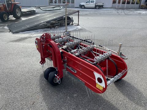 Massimo Bandrechen in verschiedenen Arbeitsbreiten erhältlich. Durch die patentierte Aufhängung mit Längspendelung und das dritte Tastrad ergibt sich eine optimal perfekte Bodenanpassung KAT 1 und 2 erhältlich. Robuster und solider Rahmen Zinkenträger mit Doppellenkstange Robustes Doppellenkstange Robustes Doppeltastrad Reflektoren für den Straßentransport an beiden Seiten montiert Hydraulisches Schwadtuch- serienmäßig Vorderräder 15x 6.00-6 (4 Doppelzinken) und 16 x 6.50 – 8 (5 Doppelzinken) Einfache Anpassung von Bandrechen an alle Fahrzeuge/Geräteträger Serie 4 -mit 4 Doppelzinken Bandrechen Massimo 224 Euro 6.500,- inkl.MwSt. Arbeitsbreite / Außenbreite / Gewicht 2100/2300mm / 330 Bandrechen Massimo 244 Euro 6.800,- 2300/2630mm Bandrechen Massimo 264 Euro 7.100,- 2450/2800mm Serie 5 -mit 5 Doppelzinken und breiterem Band Bandrechen Massimo 245 Euro 7.500,- 2300/2630mm Bandrechen Massimo 265 Euro 7.900,- 2450/2800mm Bandrechen Massimo 285 Euro 8.500,- 2650/3040mm Bandrechen Massimo 305 Euro 9.200,- 2850/3100mm + ZUBEHÖR + Fracht bei Einzellieferung : Anbaubock Looser - leichte Ausführung KAT1 + Kat2 Euro 670,- Anbaubock Lingg schwere Ausführung KAT1 + Kat2 Euro 990,- Hydr. Fangschild Typ Weber Auf/Ab-Ein/Aus Euro 580,- Gelenkwelle EURO 230,-Kontaktdaten: