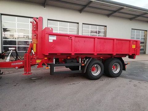 passend zu Pronar Hakenliftanhänger T185. Dieser robuste Container eignet sich optimal für den Transport von Bauschott, Schotter, usw. Durch die klappbare Bordwand hinten ist ebenfalls für den Transport von Bagger geeignet. In verschiedenen Farben erhältlich: Blau / Rot / Schwarz Ausstattung / Technische Daten: Innenmaße (LxBxH): 4250x 2420 x 700 mm, ca. 8 m³ Gewicht: ca. 1.600 kg 2 Stk. Zurrösen je Seite (vorne u. hinten) Federentlastete Rampe (Höhe: 450 mm) Federmechanismus seitlich neben der Rolle mont. Zurrleiste außen unten über ganze Länge (FL 40x10) Frontwand „Gmunden“ 150 mm, erhöht mit seitlichen Blechen Boden 5 mm (ST 37), Wand 3 mm (ST 37), Netzhaken, ohne Steigleiter Ausführung EC mit glatten Wänden + Rohr (90x6,3 mm), Ecken 90° A-Hakenaufnahme 1570 mm INFO: Beispielfotos mit Pronar Hakenliftanhänger T185 inkl. Zubehör!!Eigengewicht (kg): 1600