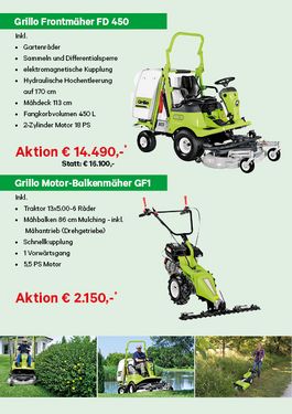 Gartenräder Mähdeck 113cm Fangkorbvolumen 450lt. 2 Zylinder Motor 22PSKontaktdaten:
