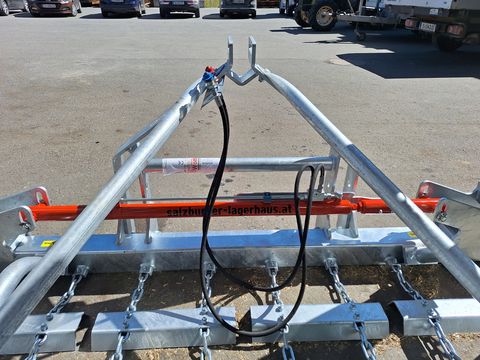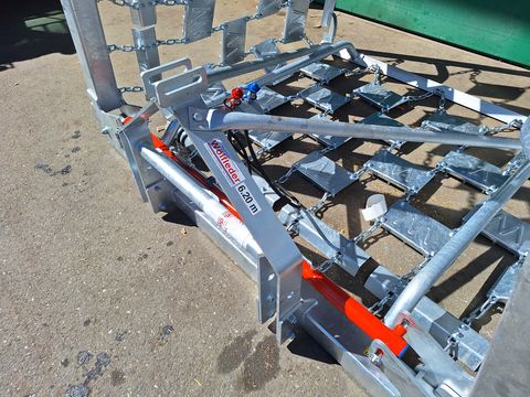 Serienmäßige Ausstattung: Feuerverzinkter Tragrahmen und Netzteil Dreipunktanhängung Kat II doppelwirkende Zylinder mit Klappdrossel, Kolbenstangenschutz und Hydraulikschlauch-Halter Automatische Klapp- und Transportsicherung mit doppelwirkendem Schlauchbruchventil Beidseitig Gleitkufen mit Hindernisabweiser bei allen Modellen am Zugbalken und auch hinten am Querbalken. Der Zugbalken ist als massiver Planierbalken ausgeführt, daher auch als Ackerschleppe bestens geeignet. 5 Reihen Reibleisten und 4 Reihen Zinken aus hochfestem Stahl 1 Reihe Maulwurfhaufen-Abscherschienen mit je 0,5 m Breite Alle Ketten verzinkt und extrem gehärtet Befestigungsstellen der Ketten durch patentiertes System völlig verschleißfrei * 6,20m Arbeitsbreite * Transportbreite 2,40m * 655kg Wir vom Verkaufsteam der LAGERHAUS TECHNIK stehen gerne für Fragen zur Verfügung und bitten sie telefonisch oder per Mail Ihren Besuch bekanntzugeben, um ausreichend Zeit für die Beratung zu haben.Hektar (ha): 0