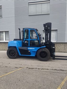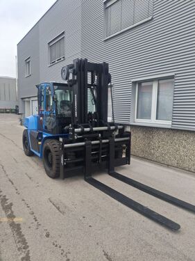 Bauart: Frontstapler / Dieselstapler, Tragkraft: 8000kg, Hubhöhe: 5000mm, Bauhöhe: 2950mm, Freihub: 1600mm, Gabellänge: 2400mm, Anbaugeräte: Seitenschieber, Zinkenverstellgerät, Sonderausstattung: 3. Ventil, 4. Ventil, Arbeitsscheinwerfer hinten, Arbeitsscheinwerfer vorn, Heizung, Vollkabine, Vollfreihub, CE Zertifikat, Zwillingsbereifung, Safety Light, Innenspiegel, Rundumleuchte, Scheibenwischer, LED, Sitz, Beschreibung: Maschine ab Juni/Juli verfügbar