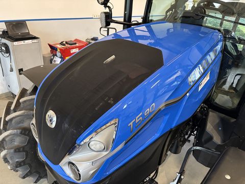 New Holland T5.90 DC mit 4-Zylinder Motor -24x24 Powershuttlegetriebe Lastschaltung mit Dynamic Start-Stop Funktion ( anfahren und stehenbleiben ohne Kupplung) -mechanische Parksperre -Heckhubwerk Hubkraft 4700kg mit Außenbetätigung -2x DW Zwischenachssteuergerät mit Powershuttlefunktion, Lastschaltung und Drehzahlspeicher auf Joystick -gefederte Komfortkabine -Klimaanlage, Dachfenster -Luftsitz Grammer 15° drehbar, Radio, -Druckluftanlage -Heckzapfwelle Sanftanlauf einstellbar -LED Lichtpaket: 8 Arbeitsscheinwerfer und Abblend-Fernlicht Led +Fronthubwerk ist montiert! Preis ist mit Fronthubwerk!Bereifung vorne: 440/65R24