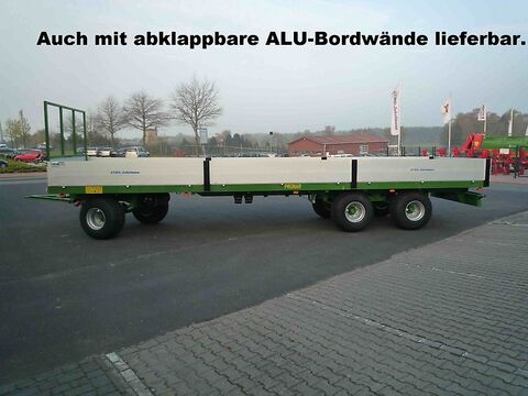 PRONAR Ballenwagen TO 26 / TO 26 M; 18. to., Druckluft, 3-Achser Technische Daten: Gesamtgewicht 18000 kg Eigengewicht 4280 kg Nutzlast ca. 13720 kg Länge Ladefläche ca. 9880 mm Länge Ladefläche ausgezogen ca. 10770 mm Breite Ladefläche ca. 2435 mm Gesamtlänge ca. 11995 mm Gesamtbreite ca. 2500 mm Stahlbodenstärke 3 mm Plattformhöhe ca. 1180 mm Spurweite 1820 mm Parabelfederung Geschwindigkeit 40 km/h Bereifung 500/50-17 Serienmäßige Ausstattung: V-Deichsel mit starrer Zugöse Ø 40 mm 2-Kreis Druckluftanlage, Feststellbremse Plattformverlängerung möglich Seitliche Begrenzung durch Aufkantung Unterfahrschutz hinten Beleuchtungsanlage mit seitlicher Beleuchtung Unterlegkeile mit Halter Lackierung RAL 6010 Modelle M: Ladefläche mit abgerundeten Kanten Löcher an den Plattformrändern 4 mm Bodenstärke Gegen Mehrpreis auf Anfrage: Staukasten für Spanngurte Kunststoffkotflügel vorne und hinten Seitlicher Anfahrschutz ALB-Regler Hydraulische Ladungssicherung (Nur bei Modell M) Bereifung 445/45R19,5 Bereifung 520/50-17 Bereifung 500/50R17 TÜV-Gutachten und Betriebserlaubnis Alle Preise zzgl. MwSt. ab Lager Itterbeck Finanzierung und Anlieferung gegen Mehrpreis möglichKontaktdaten: