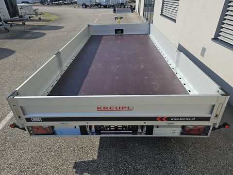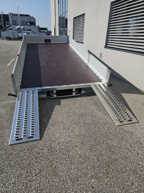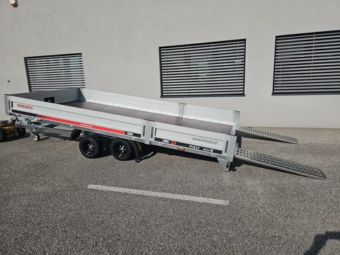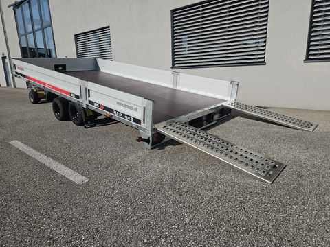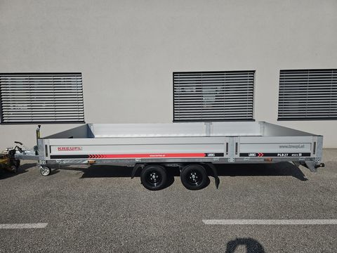 GG: 2.700 kg, NL: ca. 1.883 kg, EG: ca. 817 kg Lademaße: ca. 4528 x 2160 x 350 mm Bereifung: 195/55 R10C, Kippwinkel: 9° Tandem, auflaufgebremst, kippbar Stabiler, geschweißter Stahlrahmen (feuerverzinkt) Gasdruckdämpfer für Kippvorrichtung Aluminium-Bordwände 350 mm, abklapp- und abnehmbar Seitenbordwände mit Mittelrunge geteilt, Langwegverschlüsse Plywood-Holzboden (wasser- und rutschfest), Seilwinde mechanisch Stützrad automatik, Stahlfelgen, Alu-Verladeschienen unterschiebbar Schienenschacht unter der Ladefläche, Verzurrleiste links und rechts 2 Stk. Unterlegkeile, LED-Beleuchtung, Stecker 13-polig Inkl. TypenscheinZul. Gesamtgewicht (t): 2,7