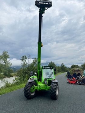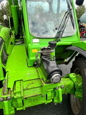 Der Hoflader der Marke Merlo, Modell aus dem Baujahr 2011, ist ein leistungsstarkes und vielseitiges Arbeitsgerät. Ausgestattet mit einem 4-Zylinder PERKINS 1104D.44T Motor, leistet der Hoflader 102 PS (74,5 kW) bei 2300 U/min und erfüllt die EURO III Abgasnorm dank Direkteinspritzung und Wasserkühlung. Mit einer maximalen Hubkraft von 2900 kg und einer Hubhöhe von bis zu 6400 mm ist dieser Hoflader ideal für anspruchsvolle Hebe- und Transportaufgaben. Die maximale Ausladung beträgt 3150 mm. Der Antrieb erfolgt über einen Diesel-Motor, und das Gerät weist aktuell 4448 Betriebsstunden auf, wobei sich diese Zahl noch ändern kann, da der Hoflader noch im Einsatz ist. Die Ausstattung umfasst vier neuwertige Reifen der Größe 405/70-24, die für optimale Bodenhaftung sorgen. Die Zustandsklasse des Hofladers ist als "Gut" (Klasse 2) eingestuft, was seine Zuverlässigkeit und gute Pflege widerspiegelt. Ein besonderes Merkmal ist das Heckhubwerk mit elektro-hydraulischer Steuerung, das über die Funktionen "auf", "ab", "manuell", "schwimmend" und "blockiert" verfügt. Die Steuerung kann sowohl von der Kabine aus als auch hinten links am Heck vorgenommen werden. Eine Zapfwelle ist vorhanden, jedoch aktuell abgeschlossen, und sie wird mechanisch angetrieben. Die Ölbad-Mehrscheiben-Kupplung ist mit einer Überlastungssicherung ausgestattet und bietet zwei Zapfwellendrehzahlen: 540 U/min und 1000 U/min, mit einer maximalen Leistung von 50/68 kW. Der Hoflader verfügt zudem über drei Lenkungsarten und erreicht eine maximale Geschwindigkeit von 40 km/h. Zur weiteren Ausstattung gehört die Vorbereitung für eine Druckluftbremsanlage, inklusive Kompressor, was den Einsatzbereich des Fahrzeugs zusätzlich erweitert. Dieser Merlo Hoflader bietet eine hervorragende Kombination aus Leistung, Vielseitigkeit und Komfort und ist damit bestens für vielfältige landwirtschaftliche und industrielle Anwendungen geeignet.Kontaktdaten: