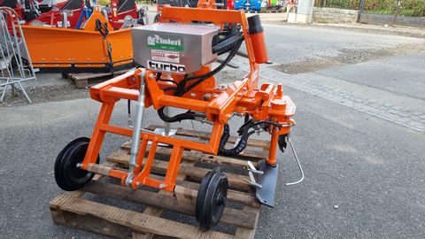 # RINIERI Zwischen-Stockräumer Modell TURBO - Baujahr 2022 mit vollautomatischer Tastersteuerung! # Beschreibung: Der RINIERI Zwischen-Stockräumer Modell TURBO aus dem Baujahr 2022 ist ein hochmodernes und effizientes Zwischenstockräumgerät, das speziell für die anspruchsvollen Anforderungen im Wein- und Obstbau entwickelt wurde. Mit nur 1 Betriebsstunde ist dieses Gerät praktisch neuwertig und in einem besonders guten Zustand (Zustandsklasse 1). # Ausstattung und Eigenschaften: - **Heckanbau**: Der Rinieri TURBO ist mit einem 50 cm Flachschar und einem einseitigen Scheibenpflug ausgestattet. - **Massiver 3-Punkt Anbau**: Kategorie 1 und 2, was für eine stabile und sichere Befestigung am Traktor sorgt. - **Gezahnter Scheibenpflug**: Für eine optimale Bodenbearbeitung und effektives Entfernen von Unkraut und Pflanzenresten. - **Hydraulischer Seitenverschub**: Ermöglicht eine flexible Anpassung des Arbeitsbereichs. - **Hydraulische Neigungsverstellung**: Für präzise Arbeitswinkel und optimale Ergebnisse. - **Verstellbare Stützräder**: Sorgen für eine stabile Führung und gleichmäßige Arbeitstiefe. - **Überdruckventil**: Schutz vor Überlastung und Beschädigung der Hydraulik. - **Elektrohydraulischer Sicherheitstaster (NOT-AUS) mit Rückhaltefunktion**: Für maximale Sicherheit während des Betriebs. - **Erforderliche Hydraulikfunktionen**: 1xEW (Einzelwirkend) + 1x Retourlauf, 2x DW (Doppeltwirkend). - **Hydraulikleistung**: Erforderlich sind etwa 30 l/min. - **Reihenbreiten**: Geeignet für Reihenbreiten ab 170 cm. - **Großer Seitenverschub**: Von 80 bis 140 cm (gemessen von der Traktormitte nach rechts außen). - **Eigengewicht**: 310 kg. Dieses Gerät ist ideal für professionelle Landwirte und Winzer, die Wert auf Qualität, Effizienz und Zuverlässigkeit legen. Mit seiner robusten Bauweise und modernen Ausstattung ist der Rinieri TURBO bestens gerüstet, um auch unter anspruchsvollen Bedingungen hervorragende Arbeitsergebnisse zu liefern.Kontaktdaten: