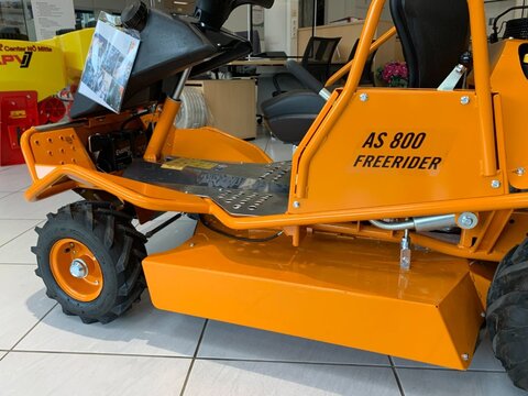 Kompakt und wendig im Gelände, für ambitionierte Privatanwender AS 800 FreeRider – der größere Bruder des AS 799 Rider. Unterschiede sind zum einen der stärkere B&S 4-Takt Series 3 Intekt Motor mit einer Maximalleistung von 13,0 PS, zum anderen das Kreuz-Mulchmesser sowie die Differenzialsperre für die Hinterachse. Der Aufsitzmäher schneidet mit seiner Messeruntersetzung Grashöhen bis zu 80 cm. Das Kreuzmesser schneidet und mulcht das Schnittgut gleichmäßig in der geschlossenen Mähhaube. Die Ablage des Schnittguts erfolgt mittig, zwischen den Rädern hindurch. Somit wird das gemähte Gras nicht überfahren, was mehr Traktion unter feuchten Bedingungen und eine zügige Zersetzung der Mulchschicht ermöglicht. Die Messerhaube lässt randnahes Mähen zu. Die Schnitthöhenverstellung erfolgt zentral in 4 Stufen und ermöglicht Schnitthöhen von 35 – 85 mm. In der Parkposition des Mähwerks wird das Messer automatisch durch die mechanische Messerkupplung abgeschalten. Der Fahrantrieb erfolgt über einen komplett stufenlosen Hydrostaten mit Geschwindigkeiten von 0,0 – 8,0 km/h vorwärts und 0,0 – 6,0 km/h rückwärts. Die Geschwindigkeit des Mähers wird nur über einen leichtgängigen Handhebel gesteuert. Beim Durchdrehen eines Antriebsrades kann die Differenzialsperre per Fußpedal betätigt werden. Dadurch werden die Hinterräder gegeneinander gesperrt und die Traktion wird wieder hergestellt. Dies erlaubt es, den AS 800 FreeRider an Hängen bis 17° Steigung und in unebenem Gelände einzusetzen. Robuste Konstruktion und kompaktes Design Der umlaufende Rohrrahmen des AS 800 FreeRiders sorgt für hohe Stabilität und Verwindungssteifigkeit auch bei harter Belastung. Zusätzlichen Schutz der Achsen und Radaufhängungen bietet der Stoßfänger. Eine aufrechte, bequeme Sitzposition wird dem Benutzer durch den nach vor vorne und hinten verstellbaren Schalensitz und die daraus resultierende Beinfreiheit gewährt. In Kombination mit der leichtgängigen Lenkung ist ein ermüdungsfreies Arbeiten möglich. Ein optionales, einstellbares Sitzfederpaket ist erhältlich. Die maximale Flächenleistung bei 80 cm Schnittbreite beträgt 6.800 m² pro Stunde. Der 15-Liter-Tank sorgt für eine hohe Reichweite. Mit seinen kompakten Abmessungen von 170 x 87 x 96 cm (LxBxH) braucht der AS 800 FreeRider wenig Platz in der Garage oder dem Schuppen. Technische Daten Schnittbreite: 80 cm Motorhersteller: B&S Motorbezeichnung Series 3 Intek 4T Motor, 1-Zyl. / 2-Zyl. Hubraum: 344 cm³ Maximalleistung: 9,7/13,0 kW/PS Nennleistung: 7,6/10,3 kW/PS Nenndrehzahl: 3200 U/min. Antrieb, 2 WD Heck / 4WD permanent / Antrieb, Stufenloser Hydrostat Max. Geschwindigkeit: 8 km/h Differentialsperre Automatische Parkbremse Geschlossenes Mähdeck Schnitthöhe: 35 - 85 mm Tankinhalt: 15 l Abmaße LxBxH:170x87x96 cm Gewicht: 231 kg Änderungen und Irrtümer vorbehalten. Aus Angaben und Abbildungen können keine Ansprüche abgeleitet werden.Kontaktdaten: