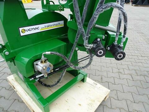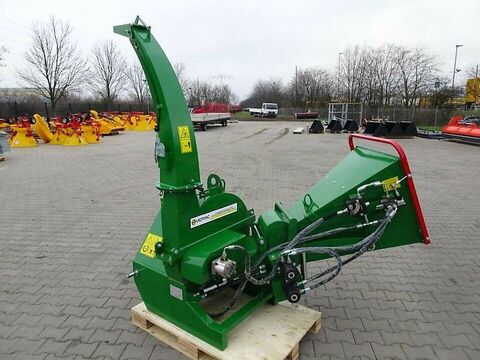 Holzhäcksler Agrifarm WOD11H Neugerät Für Holz bis zu ca. 13cm mit bis zu 13cm Holzeinzug inklusive 360° drehbaren Holzauswurf mit hydraulischen Holzeinzugswalzen Der Holzhäcksler WOD11H ist ein einfach aufgebauter Häcksler zum Häckseln von Ästen, Stämmen, Büschen, Sträuchern und deren Blättern. Weiterhin ist er ideal geeignet zur Herstellung von Hackschnitzeln für Ihre Heizungsanlage. Die Besonderheit dieses Holzhäckslers sind zwei hydraulische Einzugswalzen sowie der Vor- und Rücklauf der Einzugswalzen. Beide Einzugswalzen sind beidseitg gelagert. Montiert wird dieser Holzhäcksler an die 3-Punkt-Aufnahme Ihres Traktors und wird mit 540 / 1.000 U/min angetrieben. Ihr Traktor sollte mindestens über ca. 20PS verfügen, je nach Stärke des Häckselgutes. Zum Antrieb der hydraulischen Einzugswalzen benötigen Sie einen doppeltwirkenden Hydraulikanschluß am Traktor oder einen einfachwirkenden und einen drucklosen Rücklauf. Die Zapfwelle vom Traktor treibt die Schwungmasse des Häckslers an. Keilriemen oder ein Nebengetriebe sind nicht verbaut. Ein Vor- und Rücklauf der Walzen gewährleistet den Transport des Häckselgutes zu den Messern. Sollte es zu Verstopfungen kommen, kann das Häckselgut durch den Rücklauf wieder bequem heraus gezogen werden. Desweiteren lässt sich die Einzugsgeschwindigkeit durch ein Steuerventil regulieren. Somit lässt sich auch die Größe des Häckselgutes regulieren. Auf der Schwungmasse sind 4 massive und beidseitig geschliffene und somit drehbare Messer verbaut. Eine Gegenschneide ist am Häckslergehäuse montiert. Die Messer haben eine Länge von 21cm. Das gehäckselte Holz wird durch einen Auswurfkanal befördert. Dieser ist um 360° drehbar und der Auswurfwinkel ist ebenfalls einstellbar. Das Häckselgut kann somit bis zu ca. 6m ausgeworfen werden. Der Einfülltrichter ist für den Transport klappbar. Zwei Stoßdämpfer sorgen für ein einfaches Auf- und Abklappen des Einfülltrichters. Durch das einfache seitliche Aufklappen des Auswurfkanales kommt man sehr einfach an die Schwungmasse mit den Messern. Somit kann der Häcksler sehr einfach gereinigt und gewartet werden. Der Einfülltrichter hat eine Öffnung von 50 x 50cm und unten hin zu den Messern eine Öffnung von 20 x 18cm. Somit lassen sich Hölzer von bis zu 13cm Durchmesser häckseln. Frisches Schnittholz und weicheres Holz kann auch bis zu 15cm breite gehäckselt werden. Die Schwungmasse mit den 4 Messern hat einen Durchmesser von 63cm und ein Gewicht von 65kg. Auf der Schwungmasse sind 4 Flügel verbaut, die das Hackgut durch den starken Luftzug aus den Auswurfkanal befördern. Ein Verstopfen des Häckslers ist somit fast ausgeschlossen. Die maximale Höhe des Gerätes ist ca. 170cm. Somit kann das Häckselgut bequem auf einen Anhänger ausgeworfen werden. Der Auswurfkanal ist zudem 360° drehbar. Zudem wird das Häckselgut bis zu 6m ausgeworfen. Technische Daten: max. Durchmesser der zu schreddernden Holzstücke: ca. 13 cm Hydraulisches Einzugssystem über 2 Einzugswalzen mit Vor- und Rückwärtslauf Regulierung der Einzugsgeschwindigkeit Antrieb über die Zapfwelle für Traktoren ab ca. 20 PS empfohlen Antrieb 540 bis 1000 U/Min 3 Punkt Aufhängung Kat 1, auch auf Kat. 2 oder 3 umrüstbar Zapfwellenanschluss Anzahl der Schneidmesser: 4 Stück. Jeweils beidseitg verwendbar Messerlänge 21cm Rotorgewicht (Messerträgerscheibe): 65 kg Durchmesser Messerscheibe: 63cm Sicherheitsbügel zum Stopp des Einzuges, sowie Vor und Rücklauf um 360 ° drehbares Auswurfrohr Auswurf bis ca. 6 m Auswurfhöhe: 170cm Maße in aufgebautem Zustand in cm: Länge 160cm, Breite 135cm, Höhe 175cm Maße im geklappten Zustand in cm: Länge 110cm, Breite 90cm, Höhe 175cm Größe Einfülltrichter: 50cm x 50cm und 80cm Länge Öffnung Einzugsöffnung: 20cm x 18cm Gewicht: 390kg Die Lieferung des Häckslers erfolgt fertig montiert mit allen Ölen und abgeschmiert. Transportkosten innerhalb Deutschland: 149,00 Euro inkl. 19% MwSt. Transportkosten innerhalb Europa: auf Anfrage- PDF Datenblatt